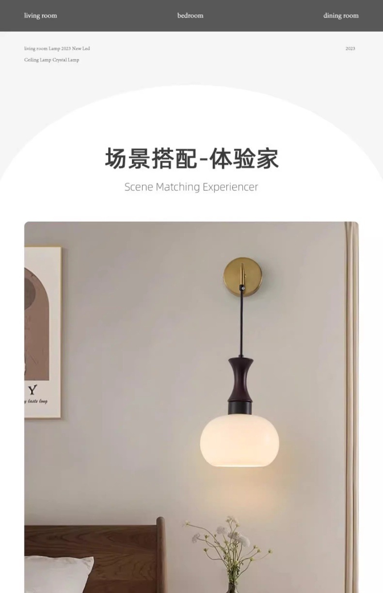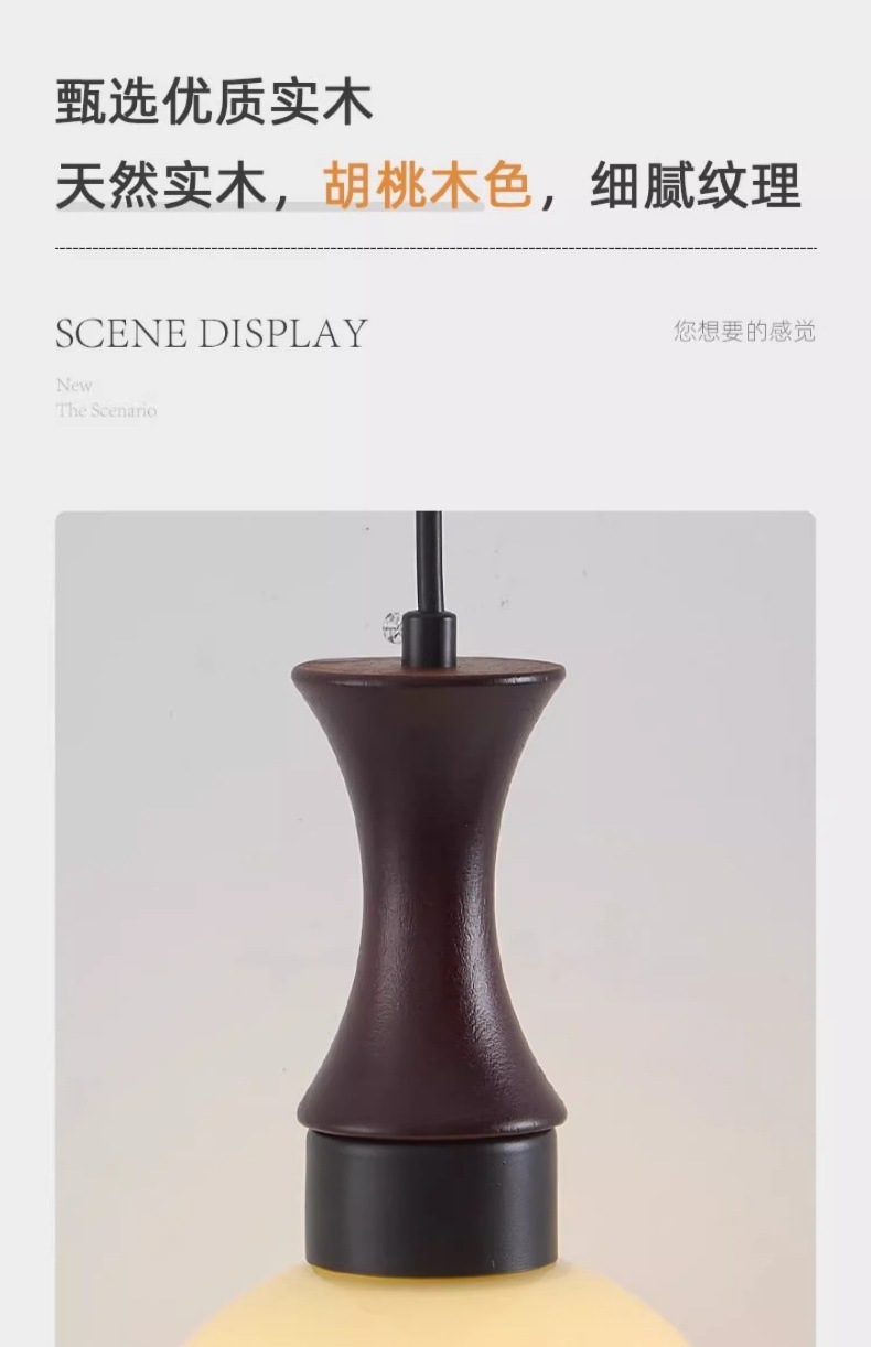 中世スタイルのレストランシャンデリアクルミ色のわびさびスタイルのハイエンドレトロダイニングテーブルティールームワンワードランプ中山ランプ