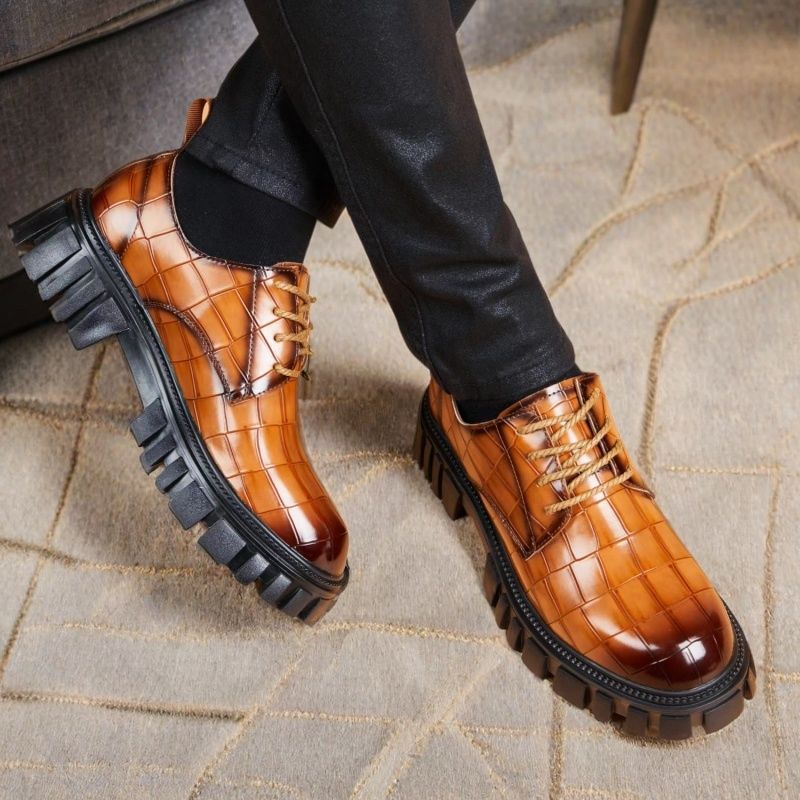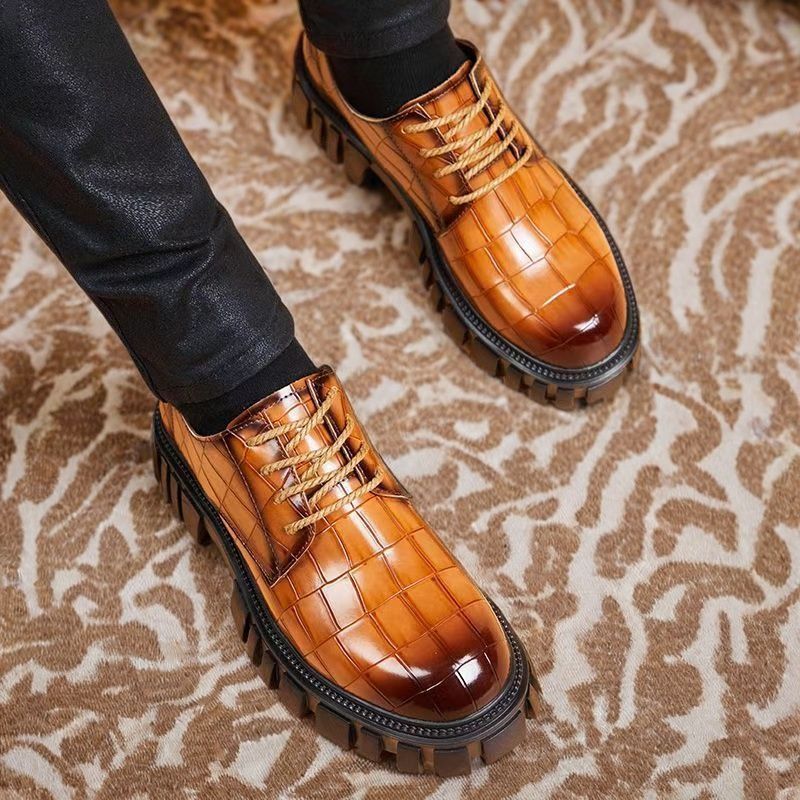 2025新型革靴男性花柄ビジネスカジュアル男性靴英倫韓国版カジュアルベルトの中に男性靴が高くなりました。