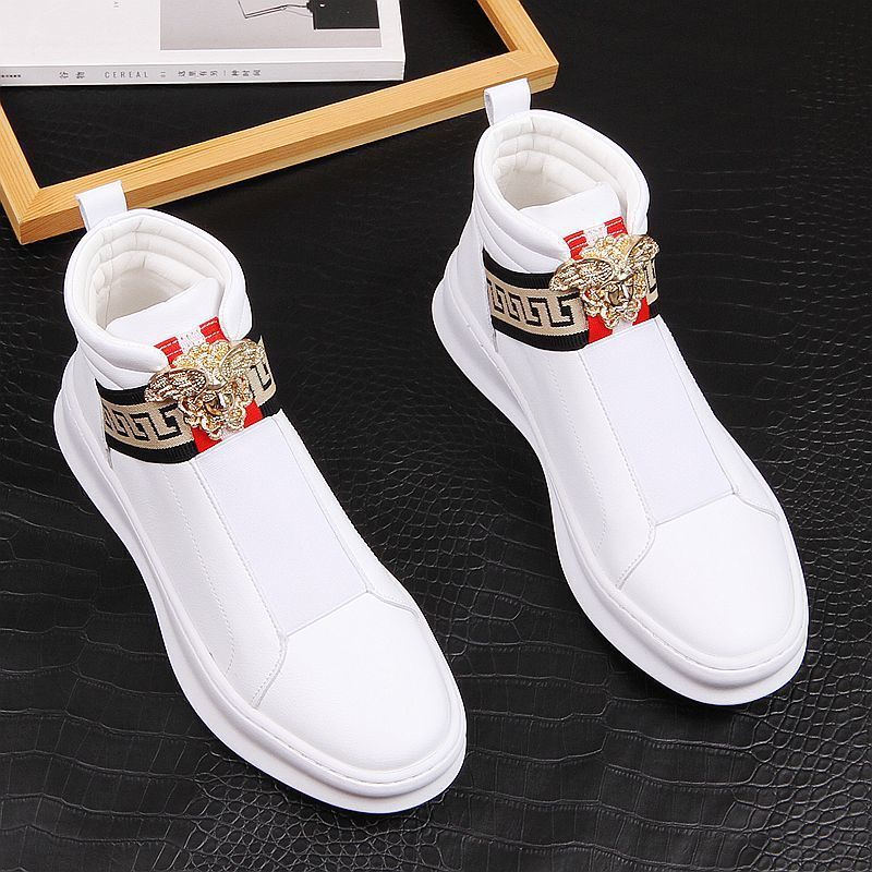 白の高い靴の潮男の刺繍の板の靴の厚い底のネットの赤い内は高くなります。