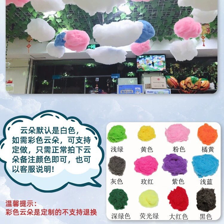 彩色棉花云朵装饰道具仿真白云挂饰幼儿园橱窗商场学校店铺布置