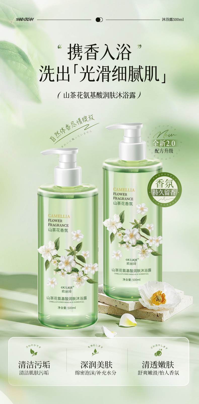 【卸売】カメリア アミノ酸の香り シャワージェル シャンプー オイルコントロール ふわふわ 香り長持ち 男女兼用