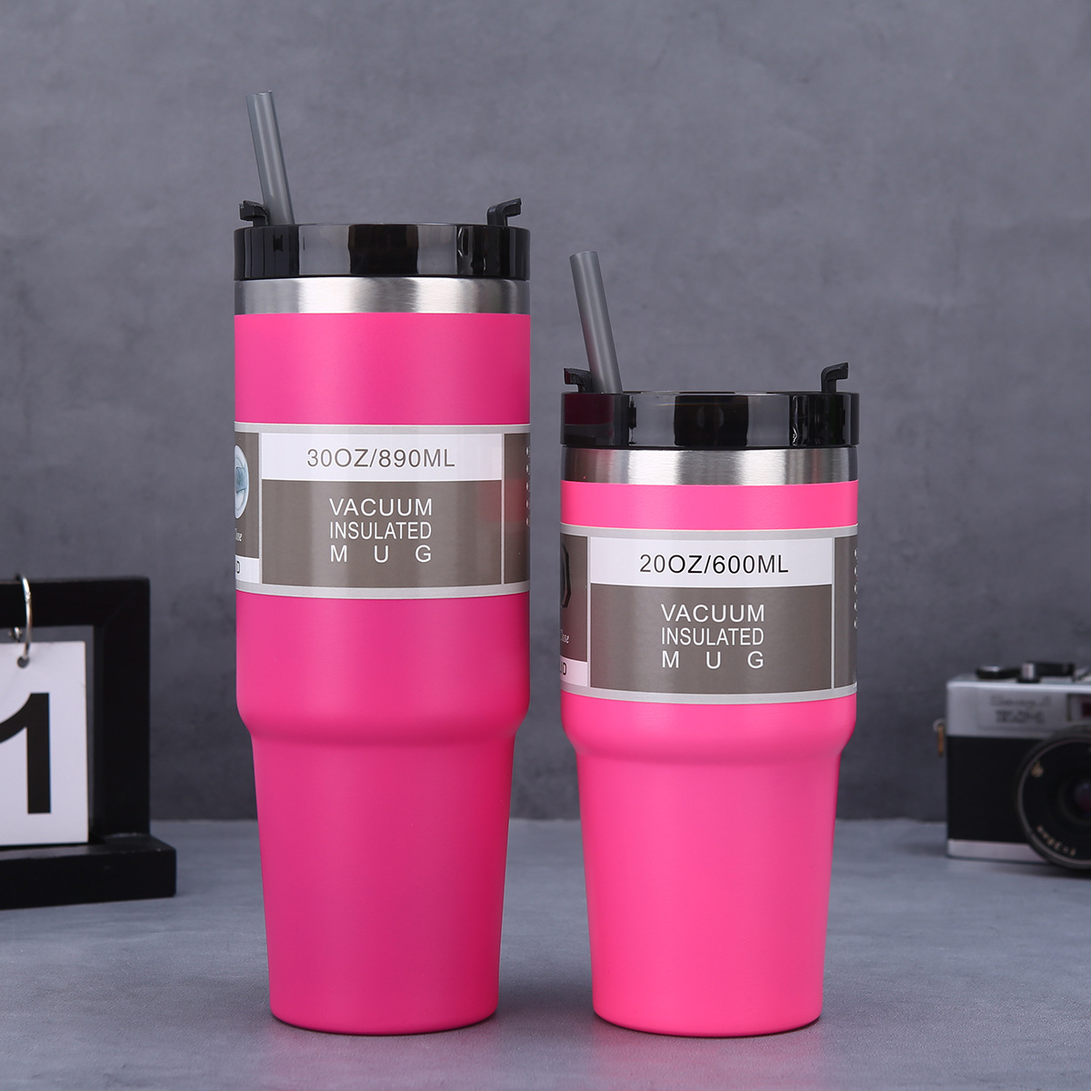 大容量,車のカップ,ビッグベリーカップ,ストロー付き,ストレートカップ,モダンなシンプルさ
