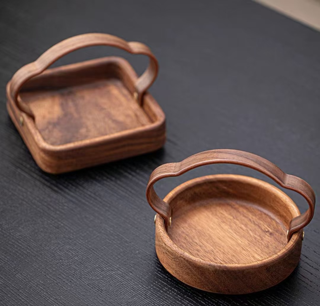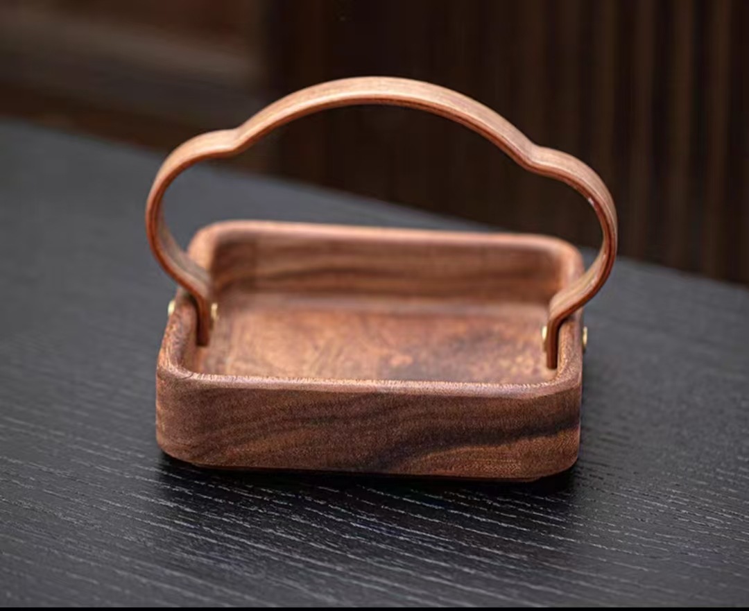 木製茶台、くるみの葉模様、家庭用、無垢材、乾燥茶葉用、茶杯置き、軽食収納、手作り