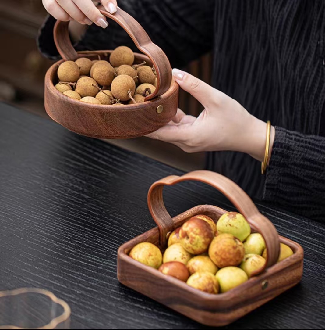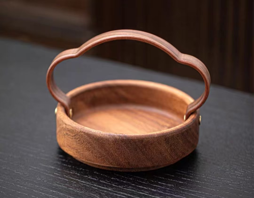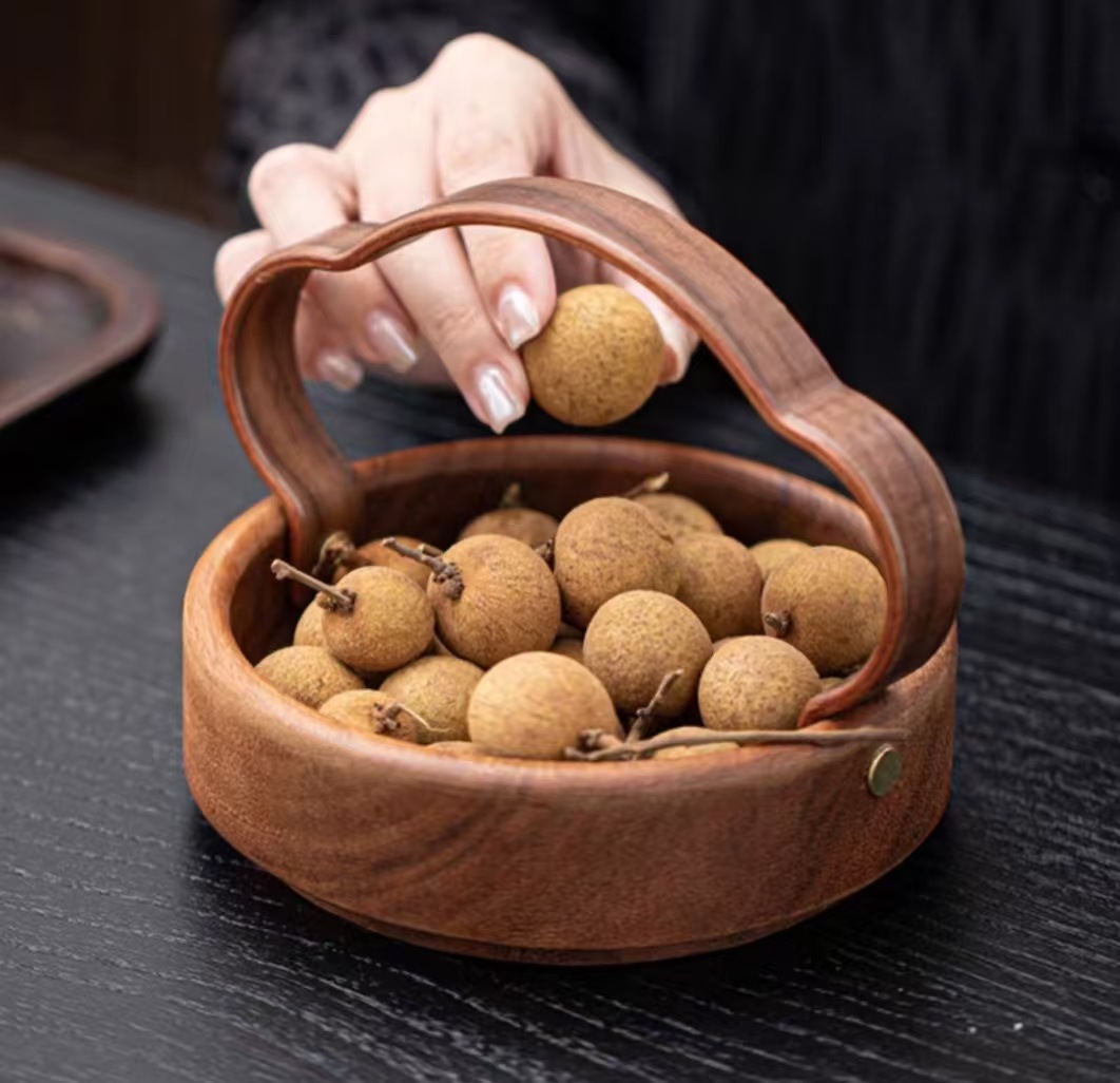 南美胡桃木圆钵果盒高端木干果盘柿子南瓜坚果瓜子茶点零食收纳盒