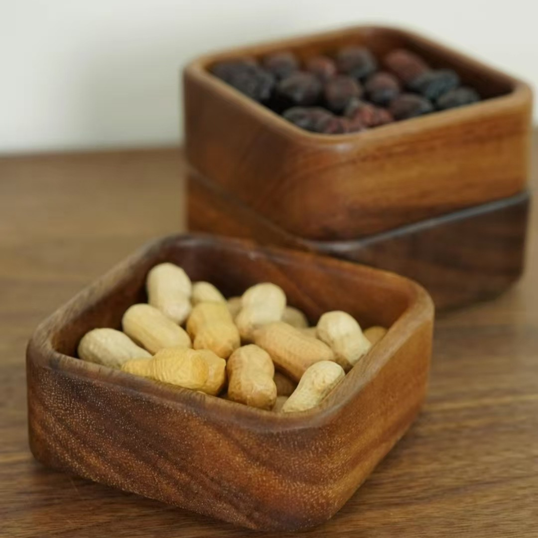 クルミ木製デザートプレートトレイペストリーナッツ小さな正方形ボウルドライフルーツプレート収納ボックス無垢材フルーツプレート木製プレート