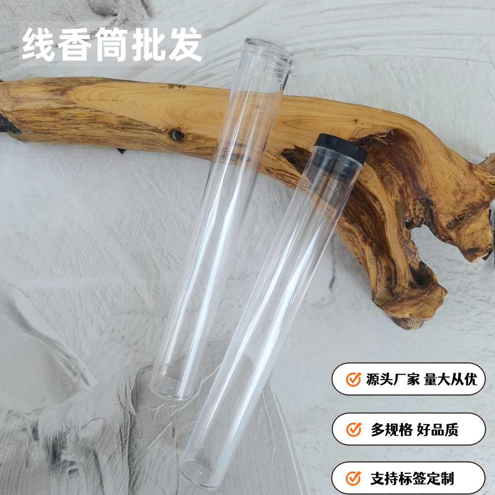 源头工厂50克亚克力透明香筒檀香沉香线香包装可贴标签圆筒
