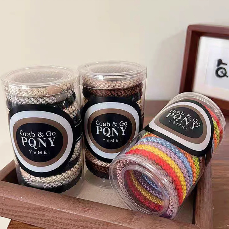 義烏メーカーはPVC印刷プラスチックカーリングシリンダーゴムバンド弾性ヘアバンドヘアロープの内外包装を製造および卸売しています