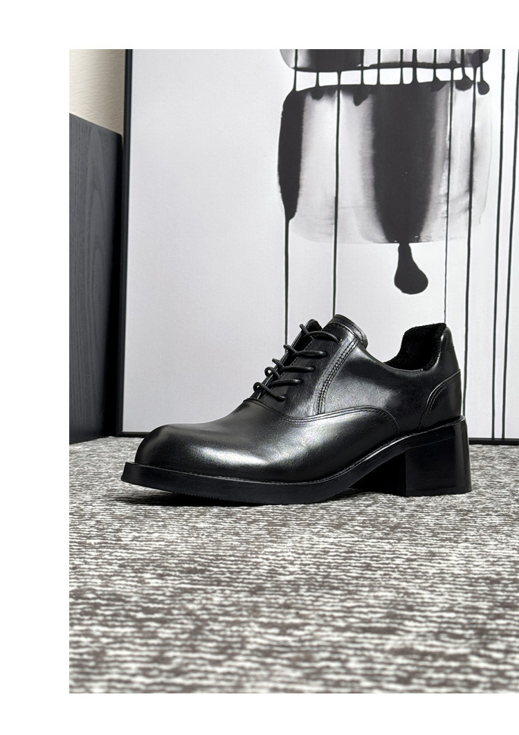 オリジナルデザインの欧米のハイヒールの角の靴の男性の明るい面の牛革は高くなって徳比の靴の本革より通気性があります。