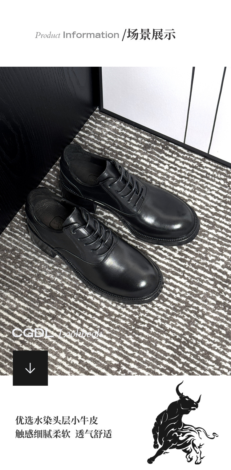 トップ層牛革6cmハイヒール靴男性高級感潮男靴通気防臭増高靴男