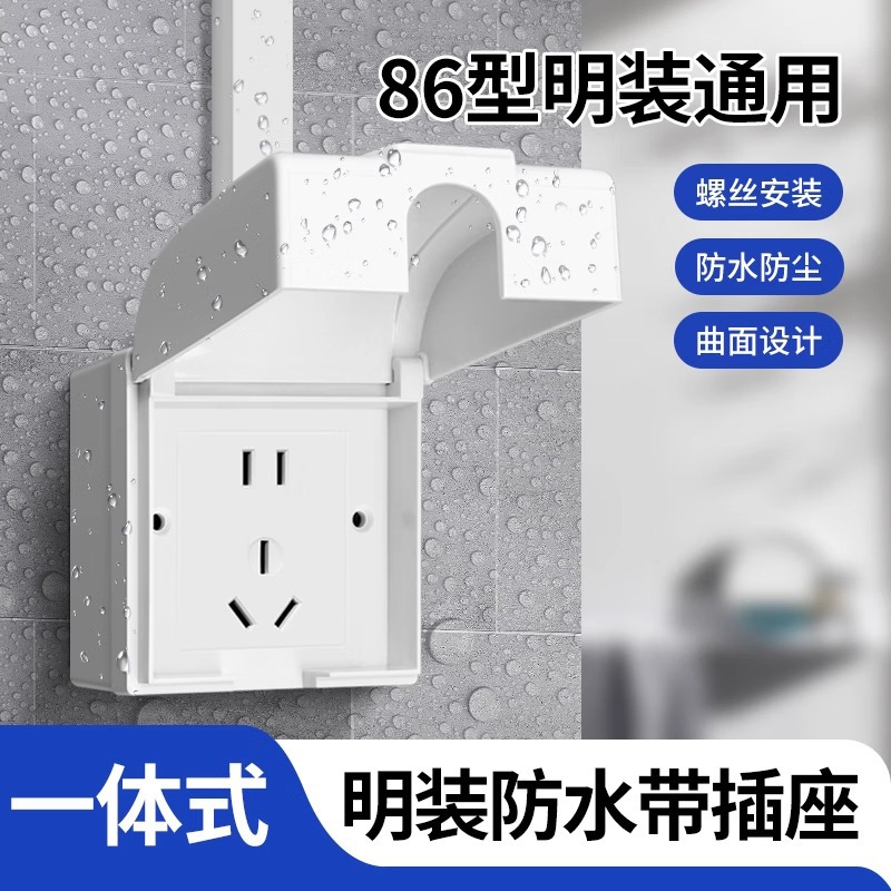 86型明装防水ボックスソケット屋外明線スイッチソケットパネル防スパッタリングボックス一体五穴防水ソケット