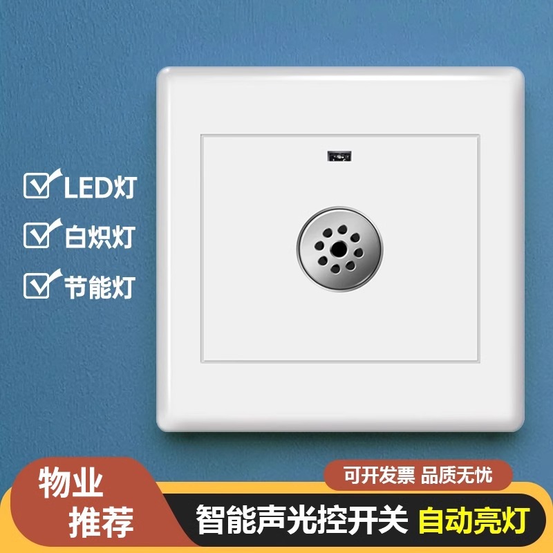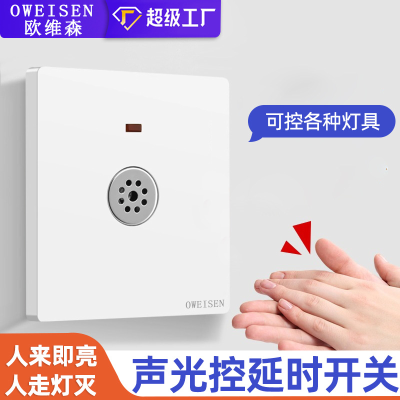 86型音声制御スイッチ、廊下用家庭用インテリジェント音声制御センサースイッチパネル、音と光の制御センサー、遅延スイッチ