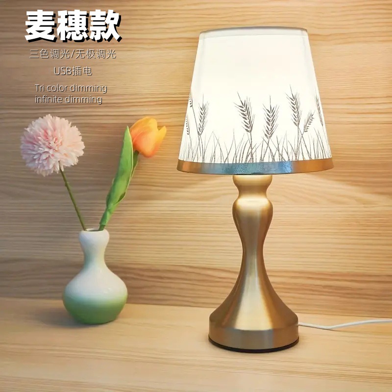 クロスボーダー麦穂布芸寝室雰囲気感ベッドヘッドランプ創意電気スタンド