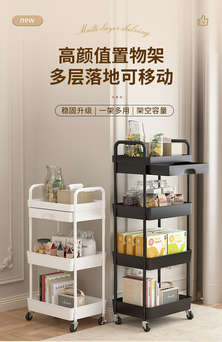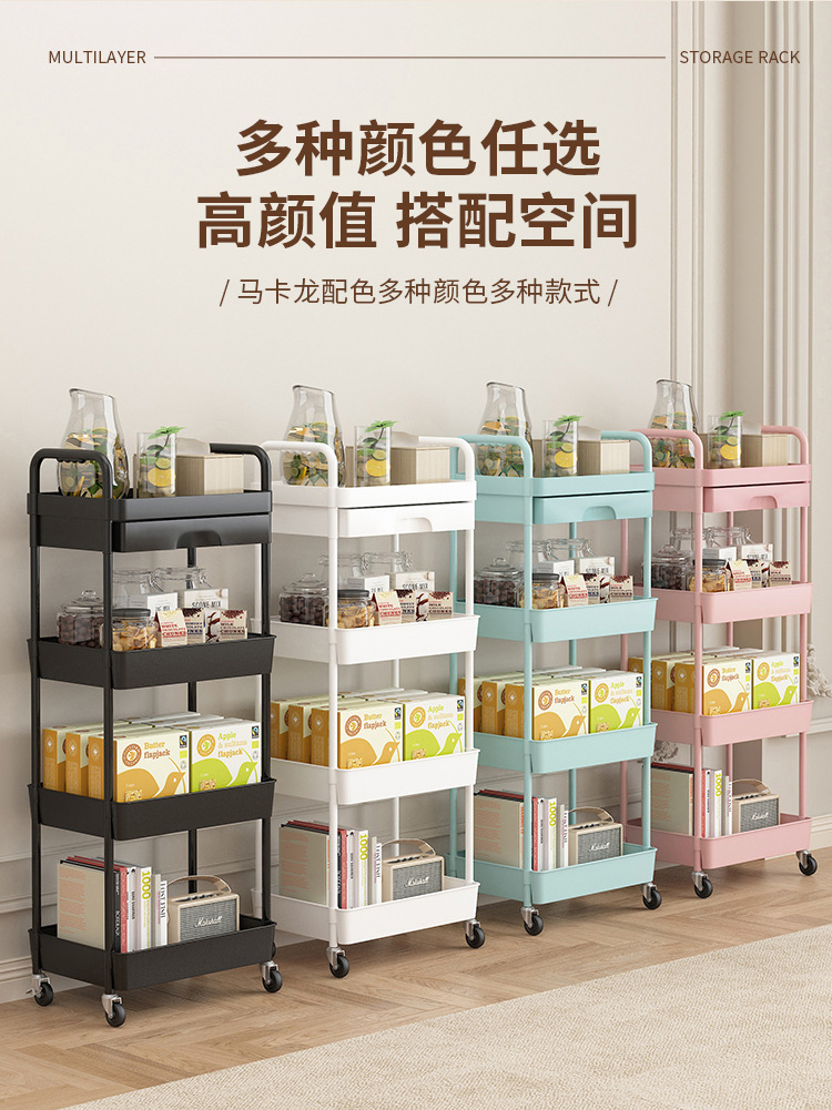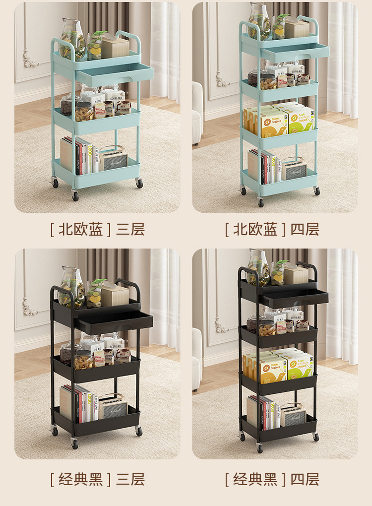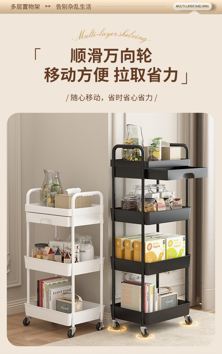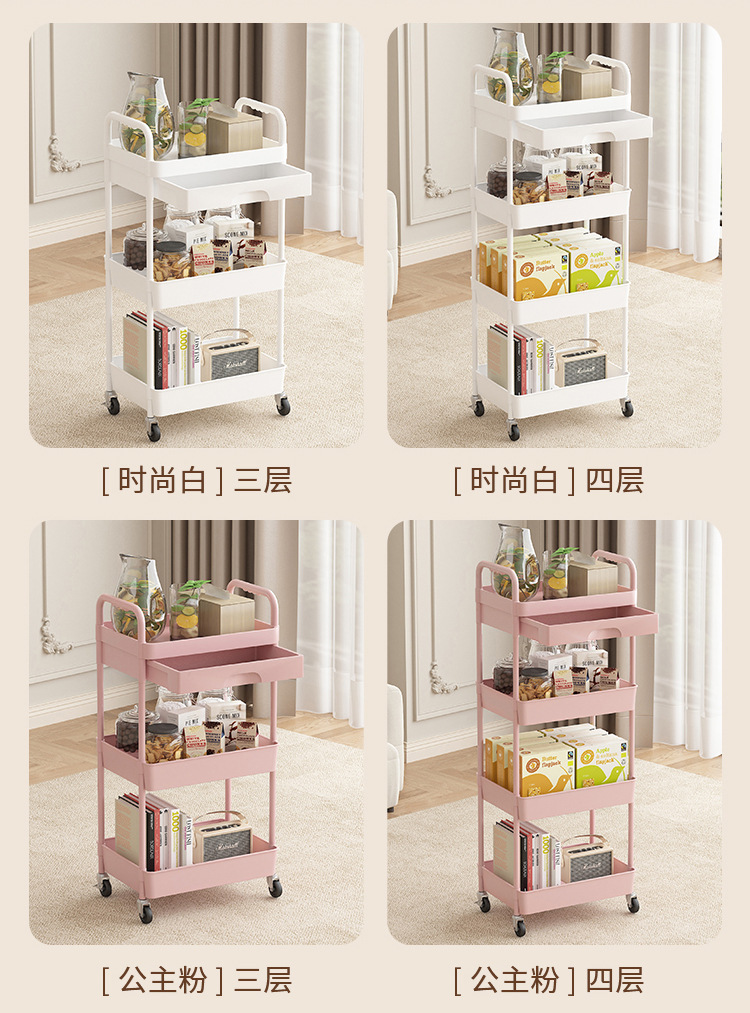 小推车置物架厨房落地多层移动收纳架家用放果蔬菜零食储物架子