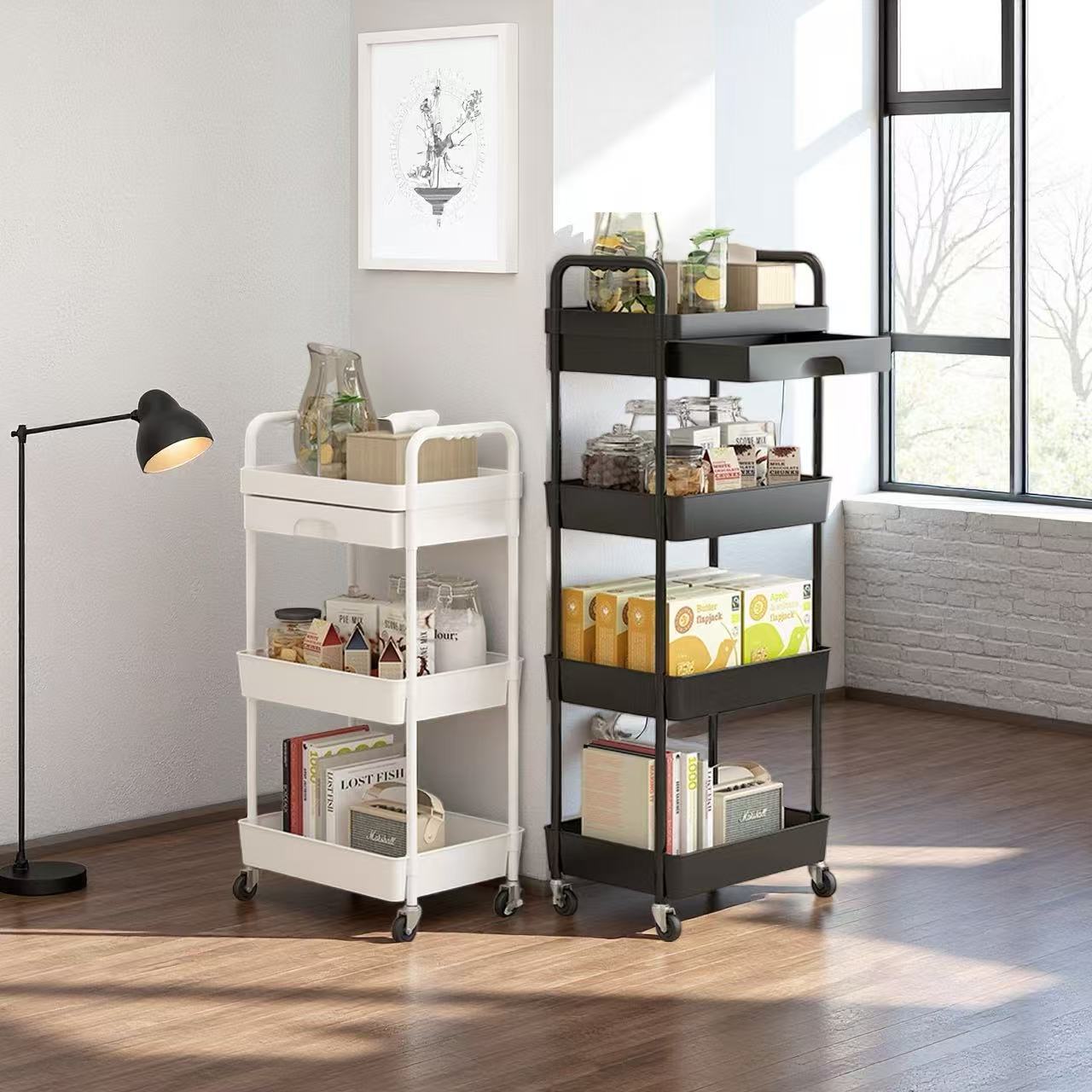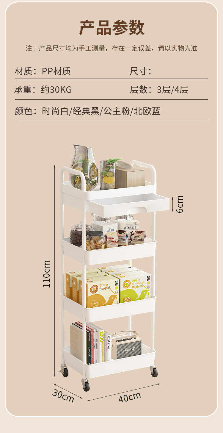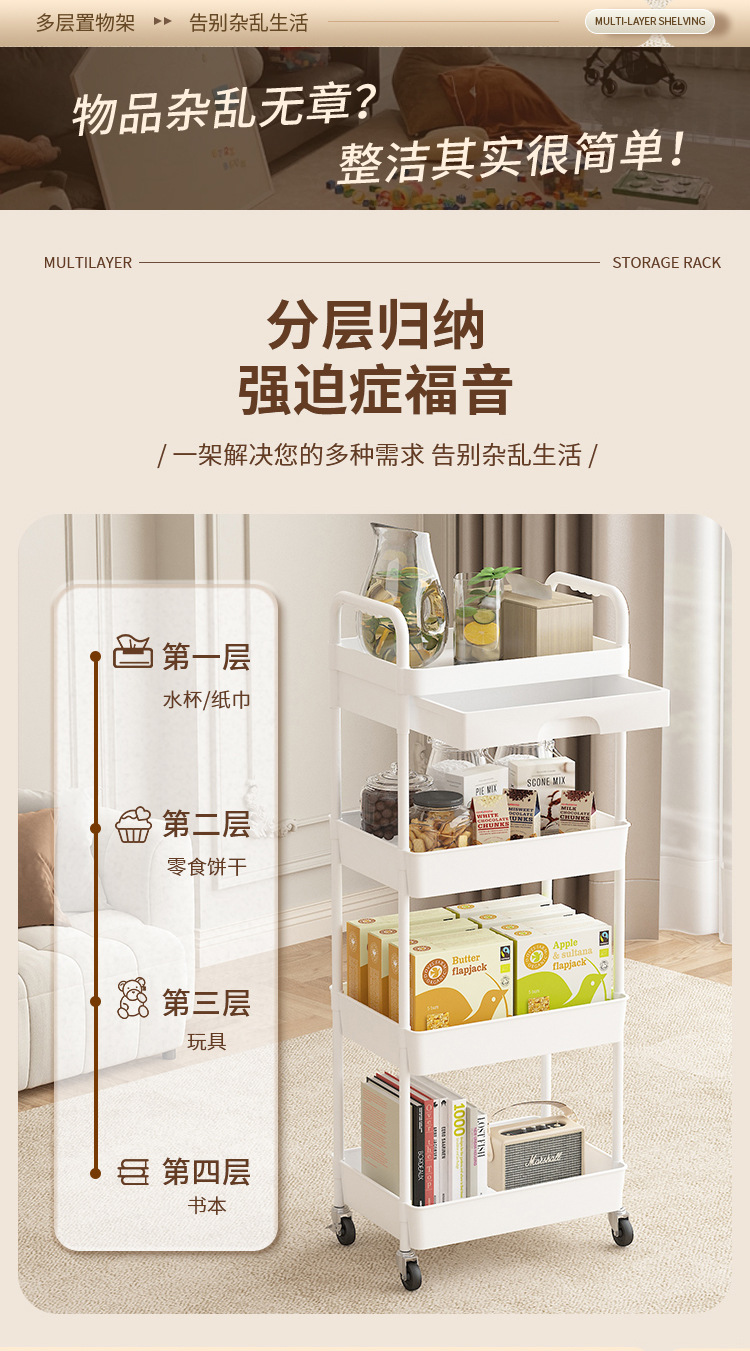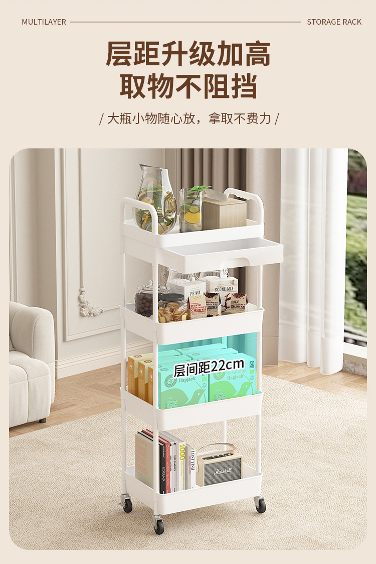 小推车置物架厨房落地多层移动收纳架家用放果蔬菜零食储物架子