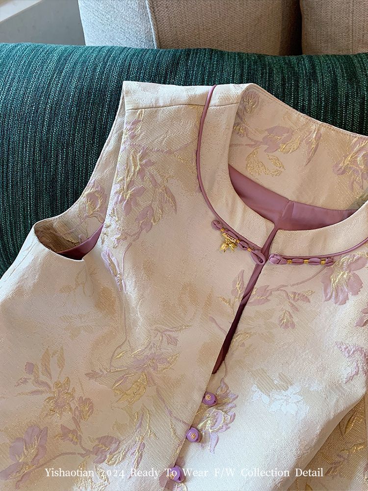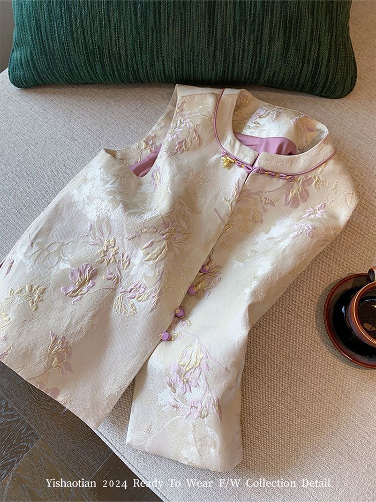 春の国風馬甲織錦宝相花新中国式馬甲女中国風高級馬甲女2025年春