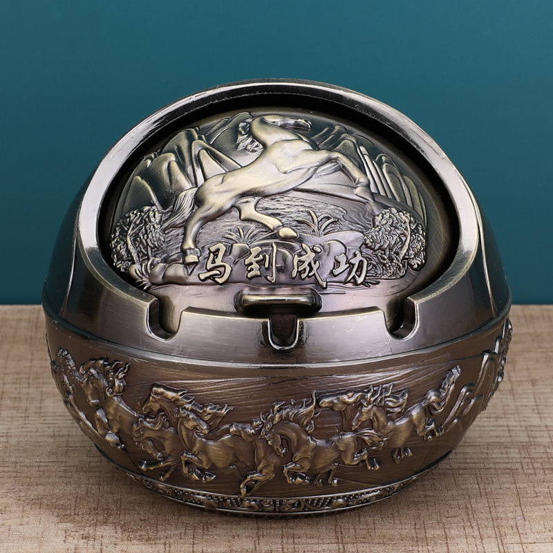 十二生肖灰皿家庭用客間創意復古軽豪華オフィス防煙味飛灰蓋付き置物