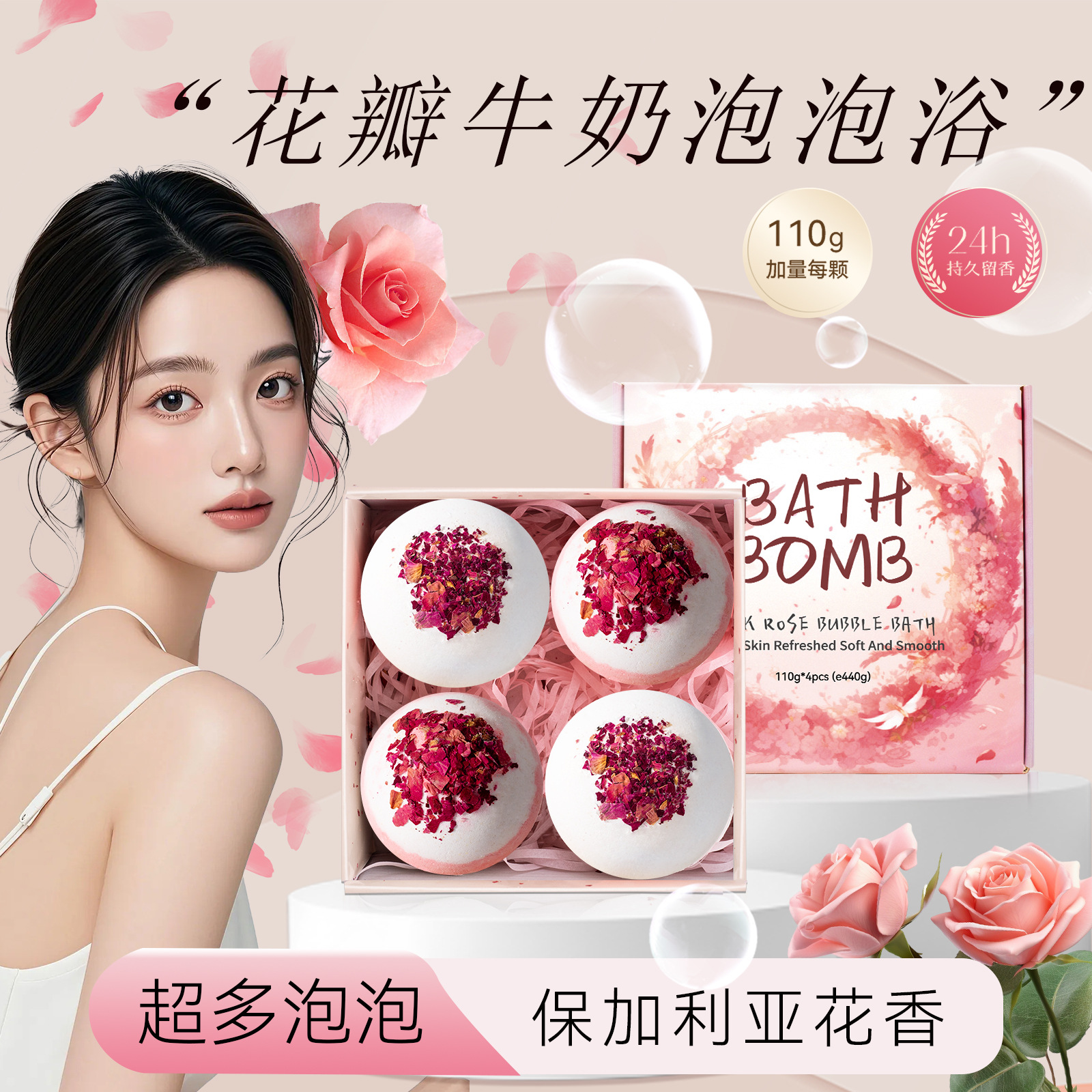 お风吕ボール干いバラ花びらミルクバスボール超多泡风吕バスタブ入浴塩子供泡エッセンシャルオイルお风吕