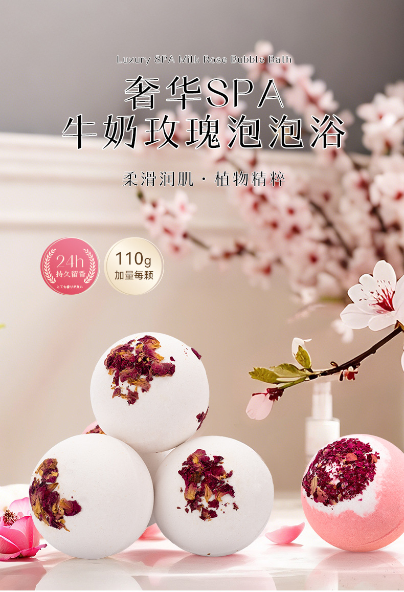 Bath bombs牛乳バラ乾花浴塩球白色浴球ホテル精油若肌クロスボーダー風呂球