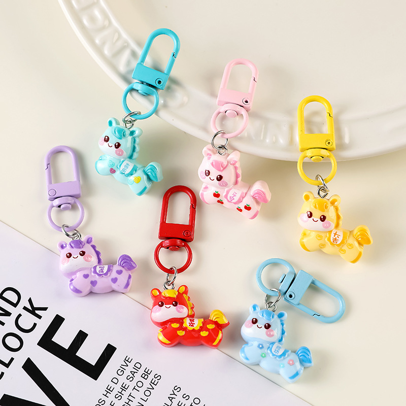 新款创意树脂爱心小马钥匙扣可爱精致情侣小马爱心扣公仔书包挂饰