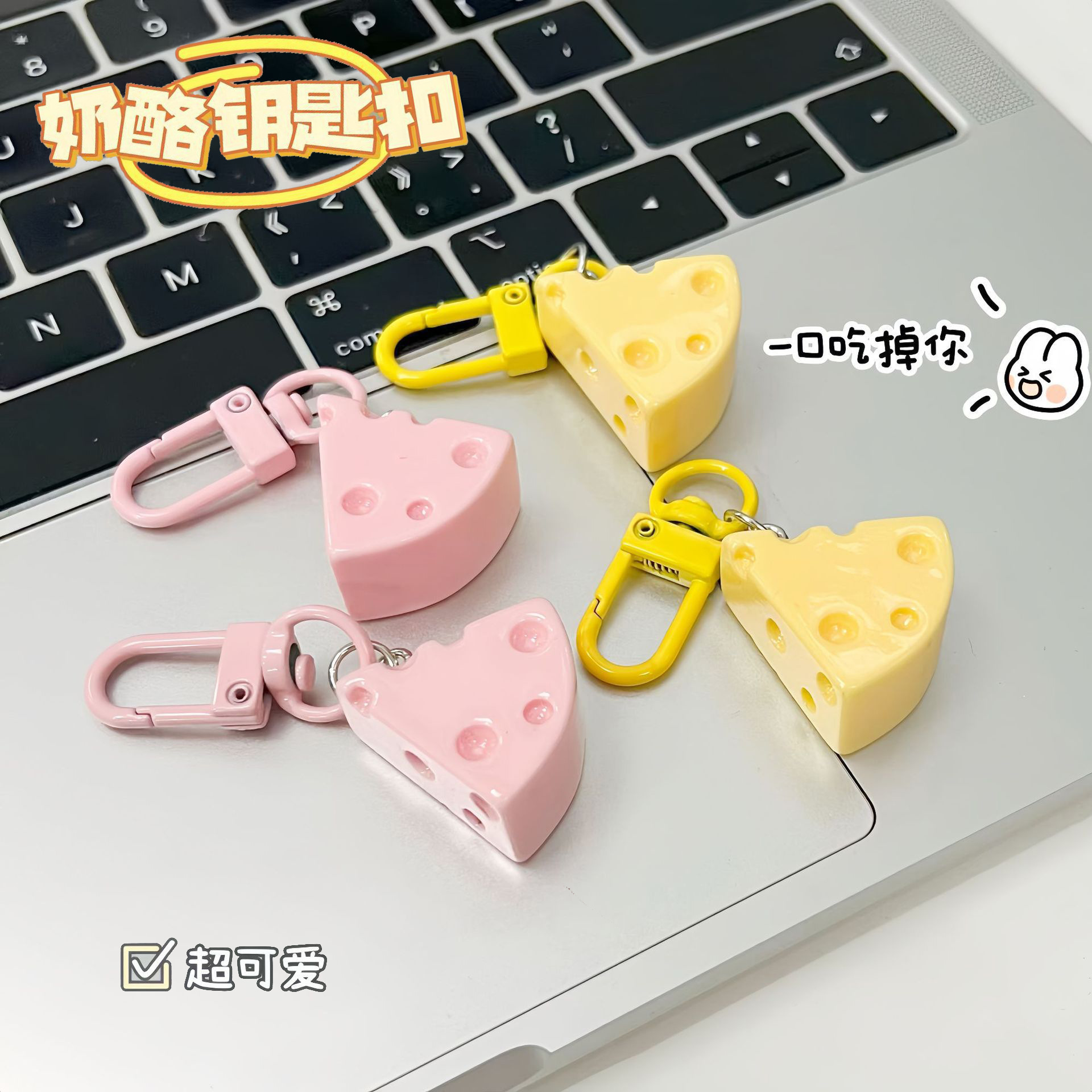 かわいい漫画チーズキーホルダー、チーズペンダント、スクールバッグアクセサリー、女の子用ペンダント、小さくてミニ、絶妙で多用途