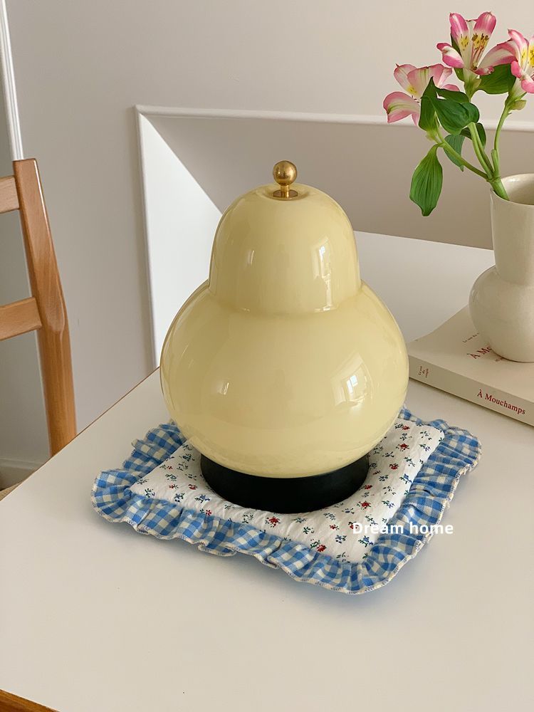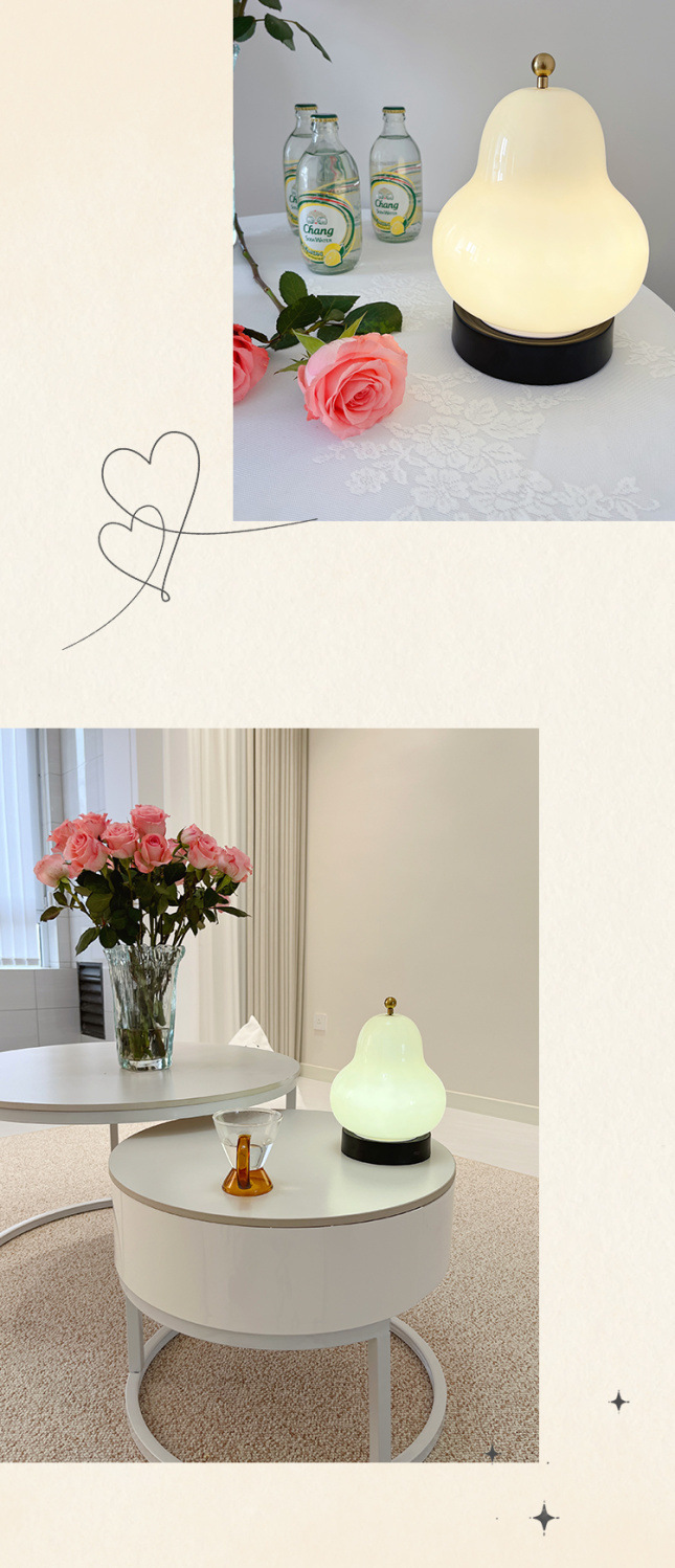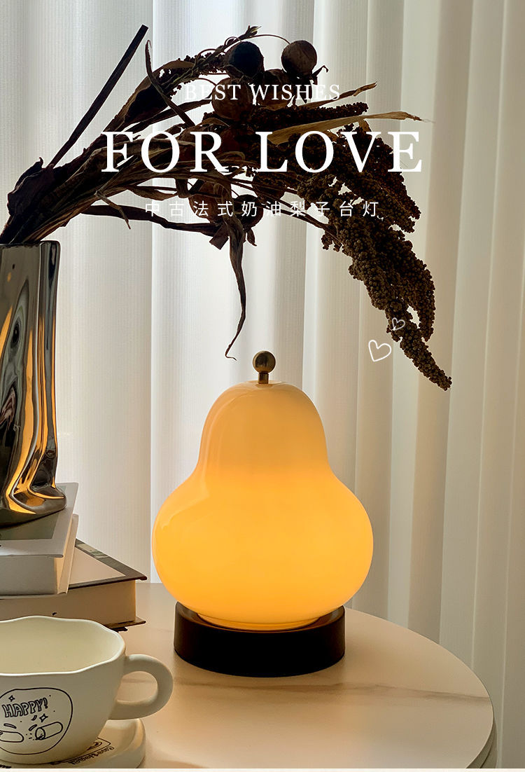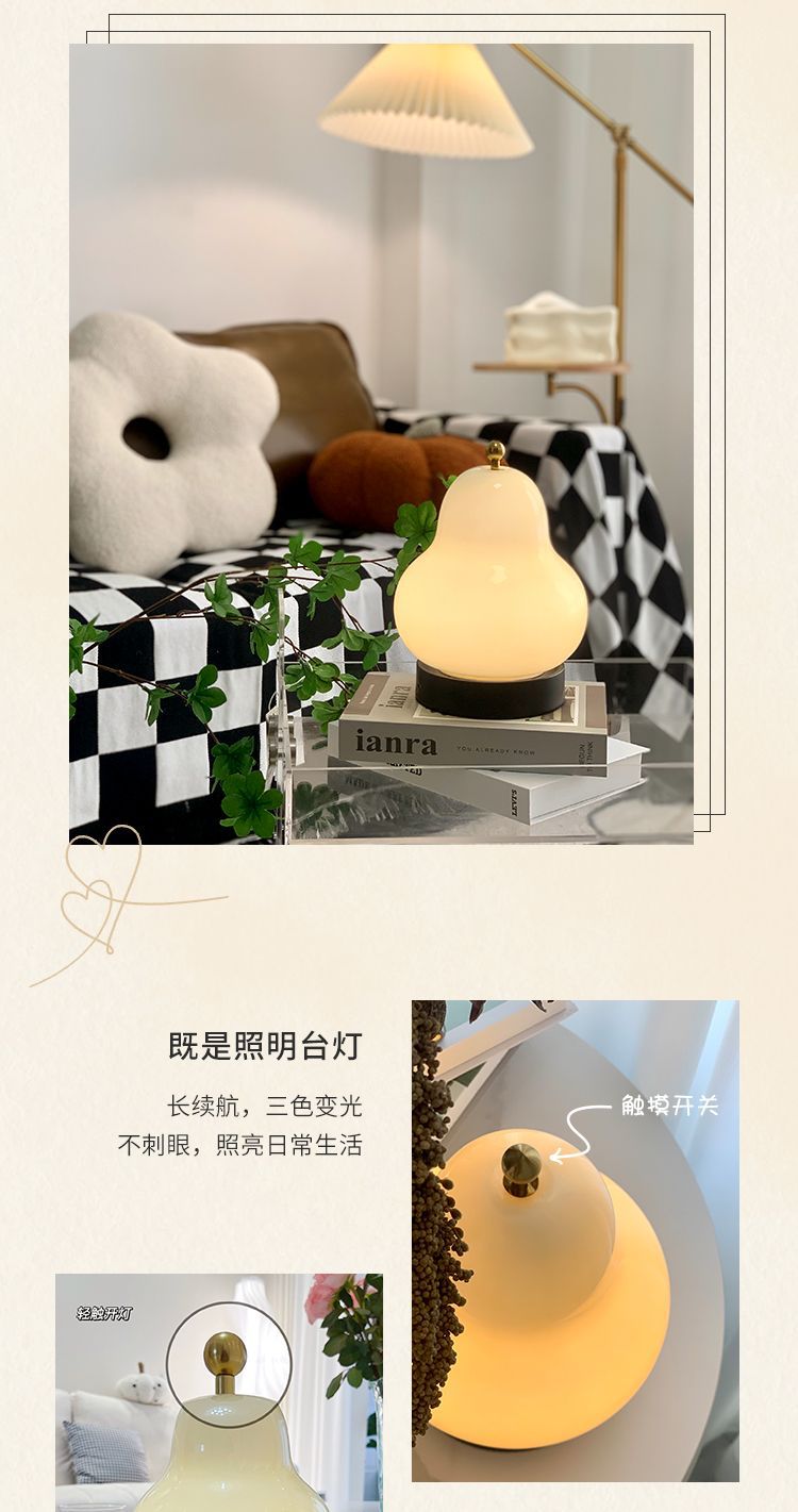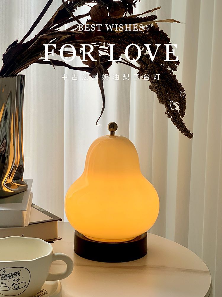 奶油梨子台灯网红高级感中古风卧室床头灯玻璃充电触摸便携小夜灯