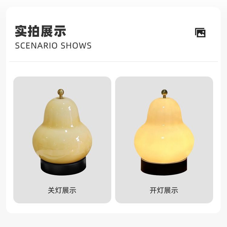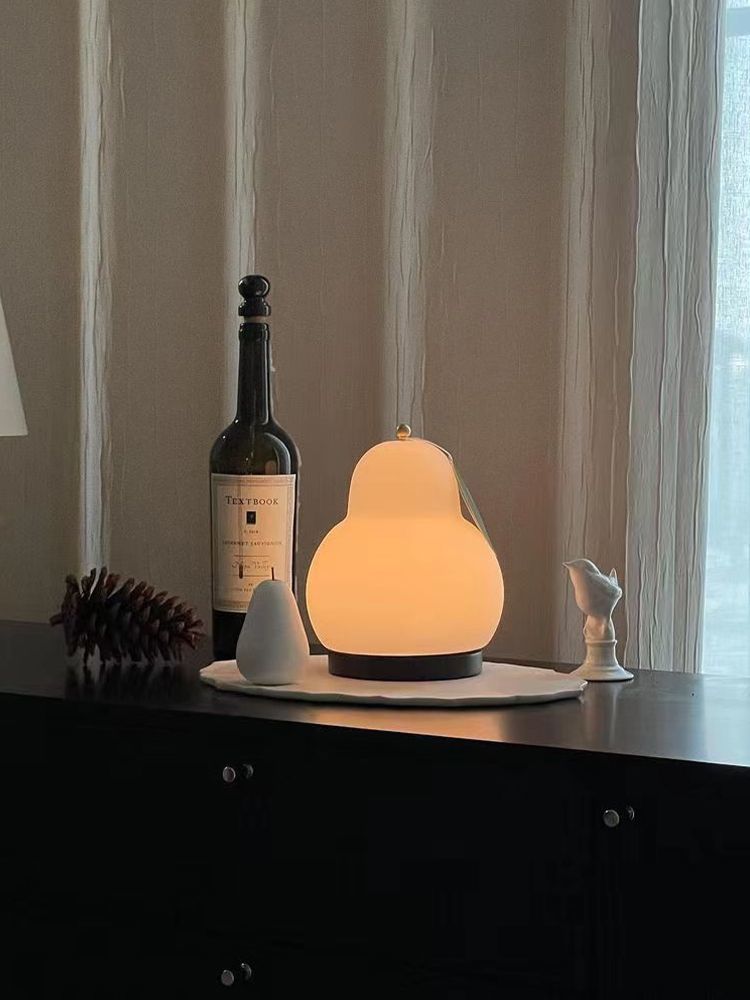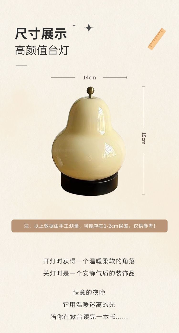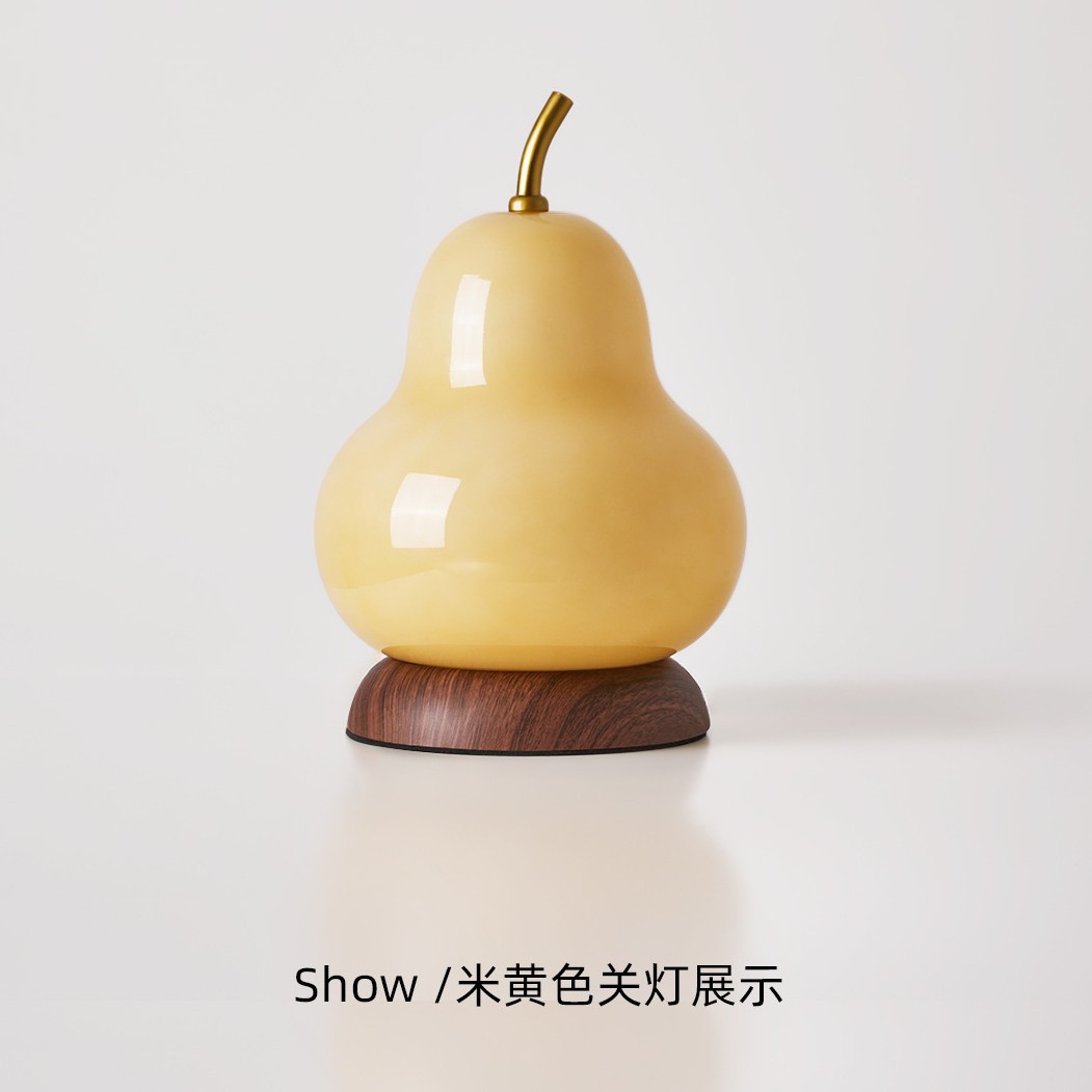 中古风卧室床头灯便携充电氛围高级感小夜灯梨子造型奶油风台灯