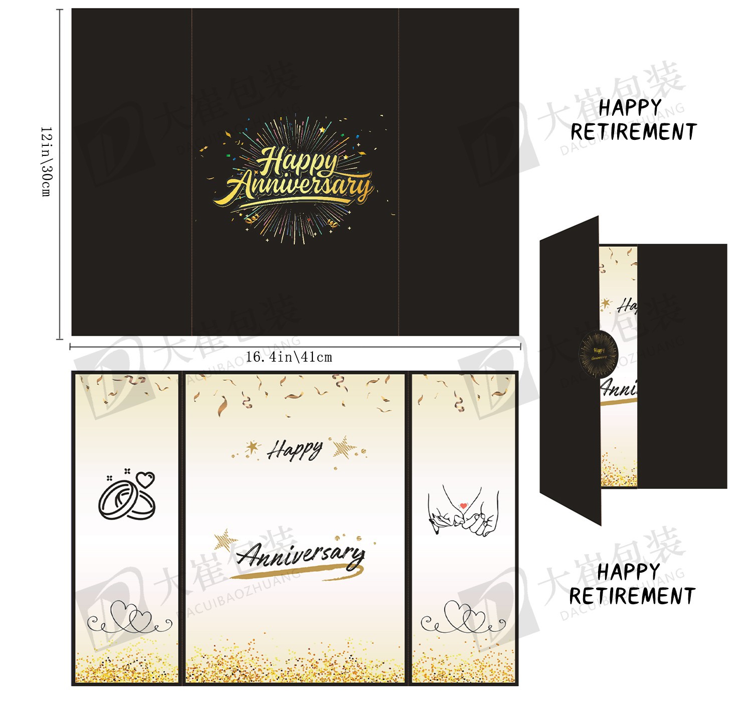 ブラックゴールドの「ハッピーバースデー」紙製お金出しボックス、サプライズ誕生日パーティー、ハロウィンギフト、クリスマスギフトボックス