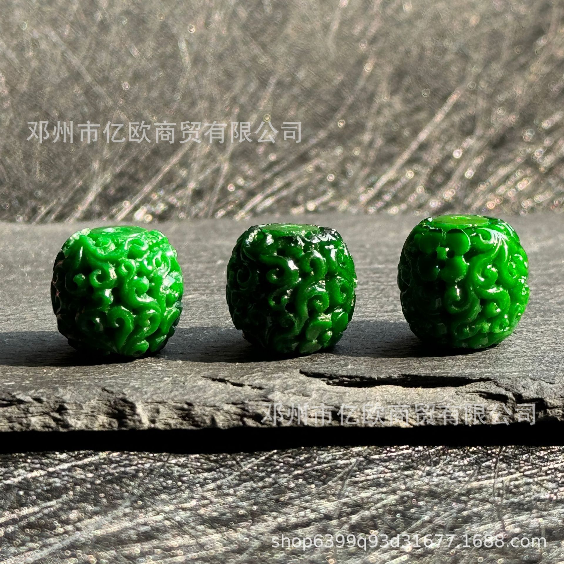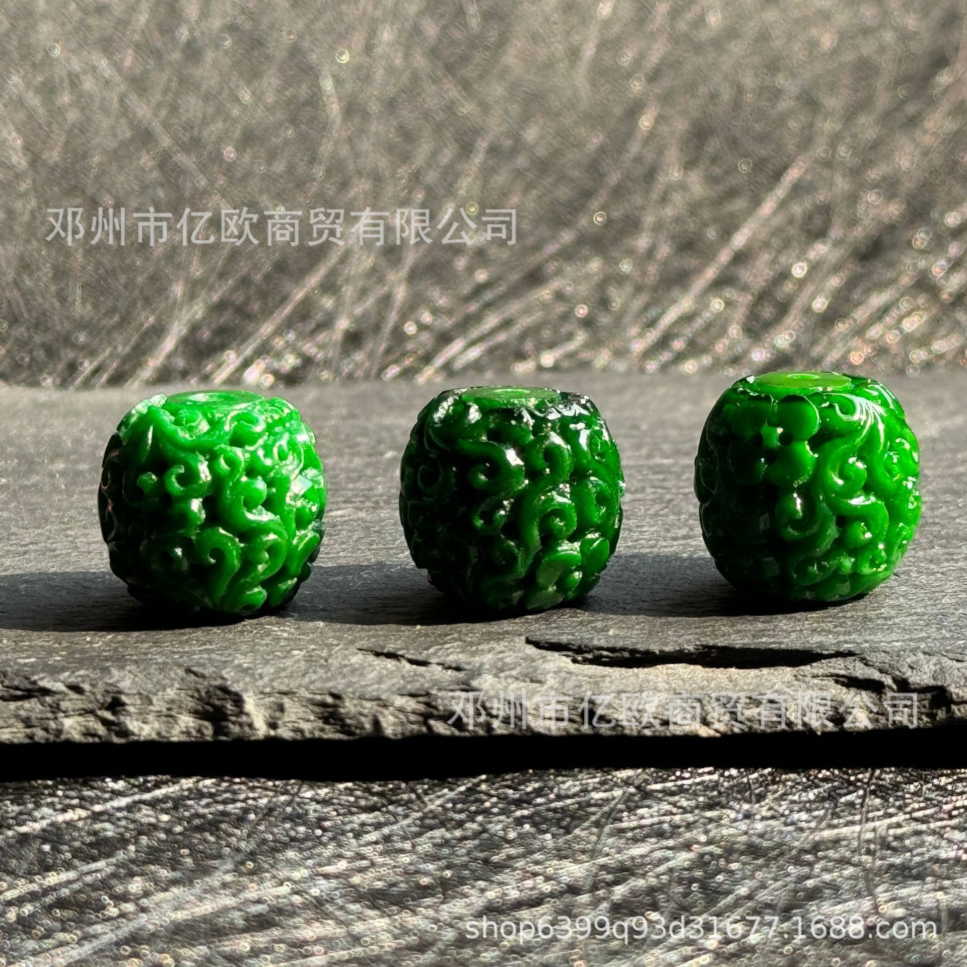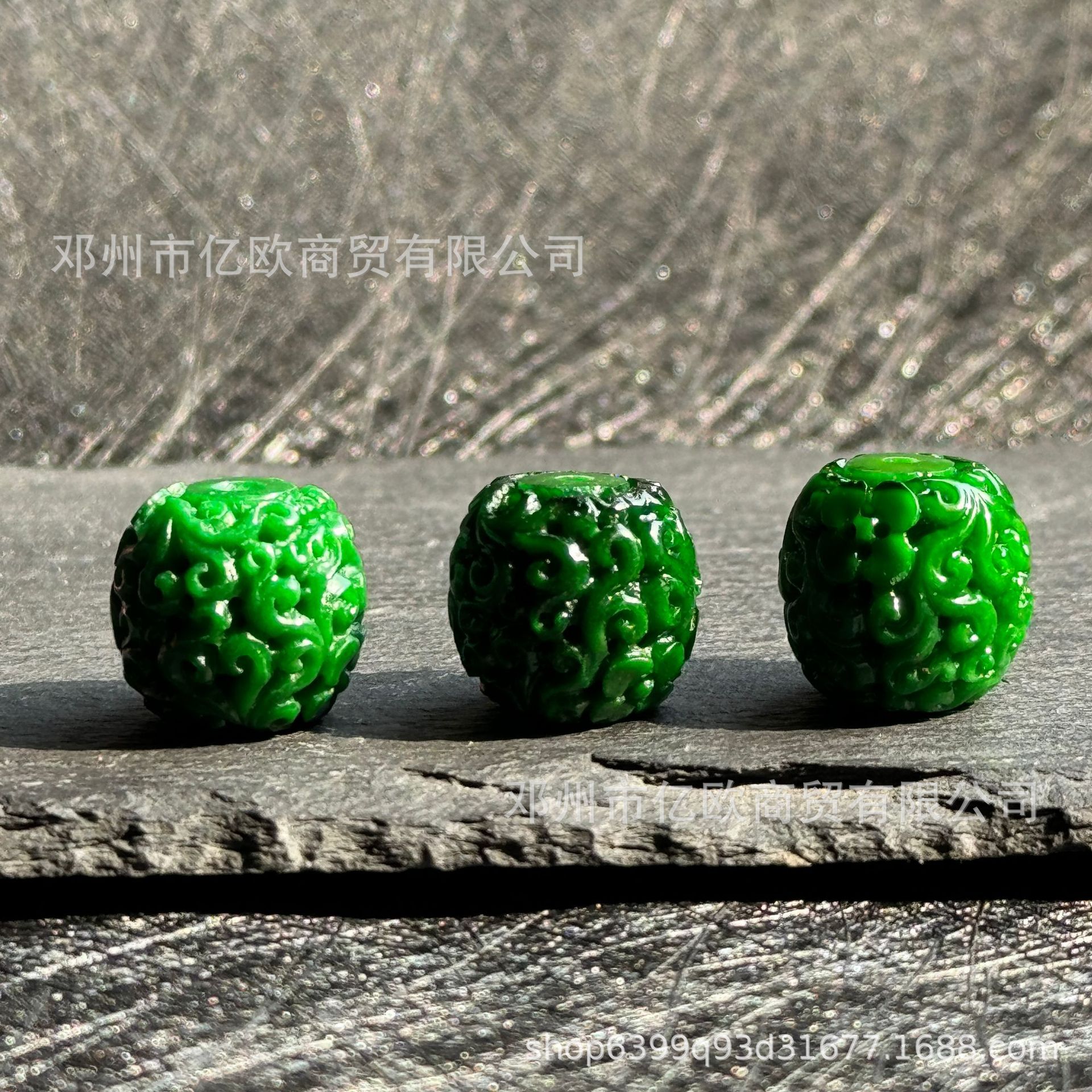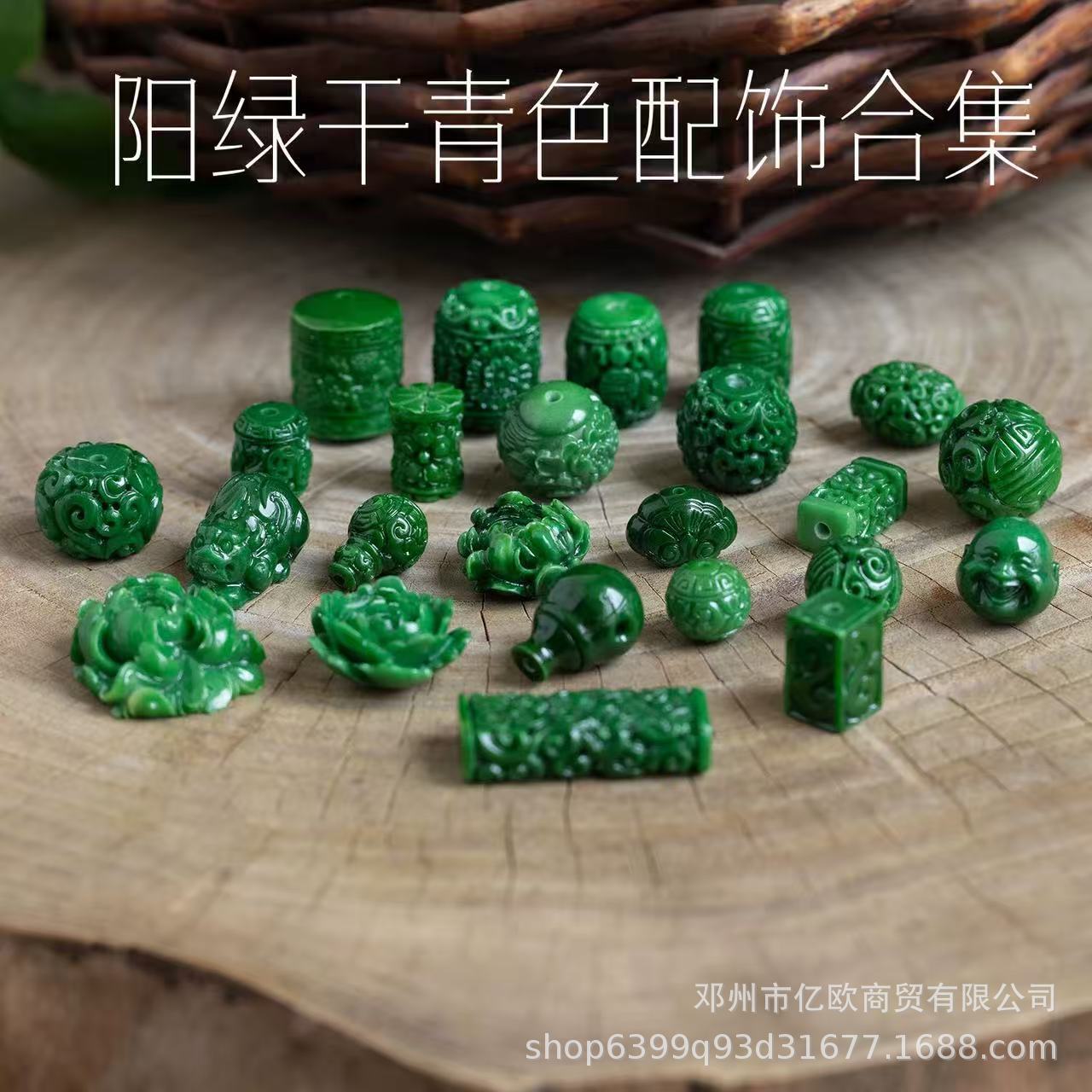 翡翠干青祖母绿饰品配件回纹雕刻佛头串珠复古风diy手串材料批发