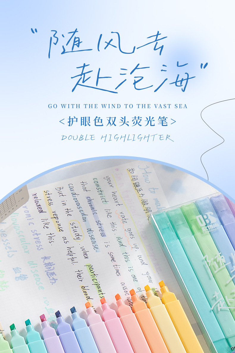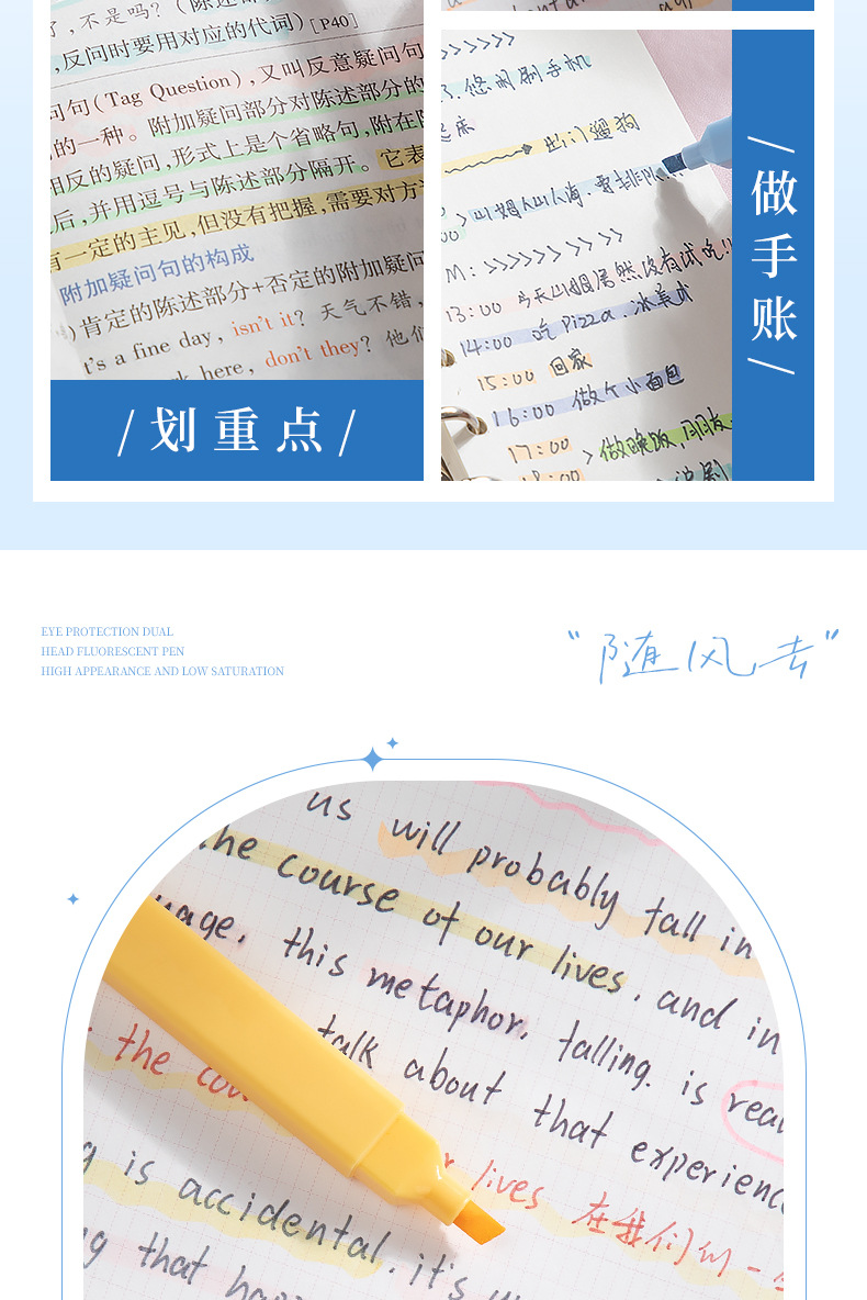 ダブルヘッド蛍光ペンマーカー学生用手帳文房具重点記号太さカラー