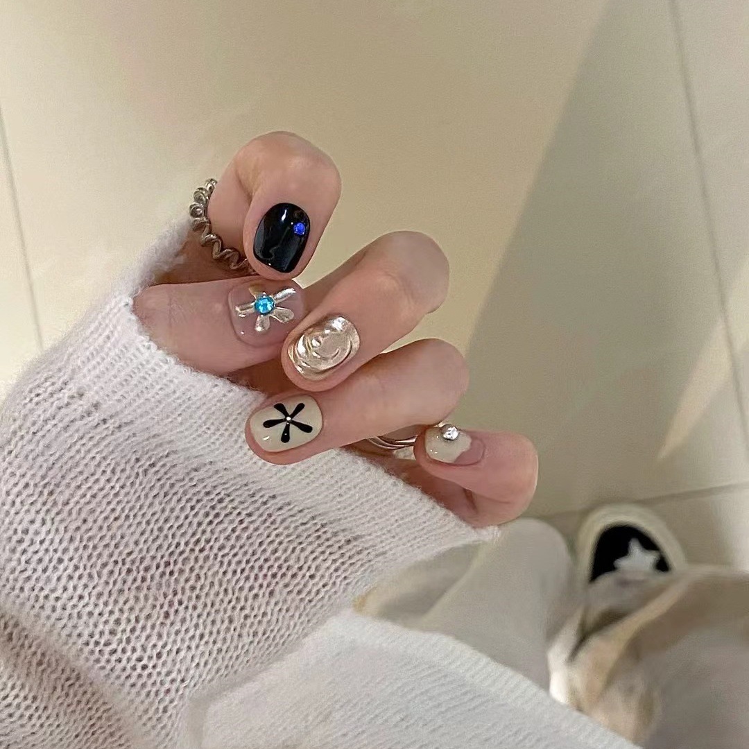 纯手工穿戴甲氛围感手绘花花ins简约百搭气质显白甜酷日常美甲贴