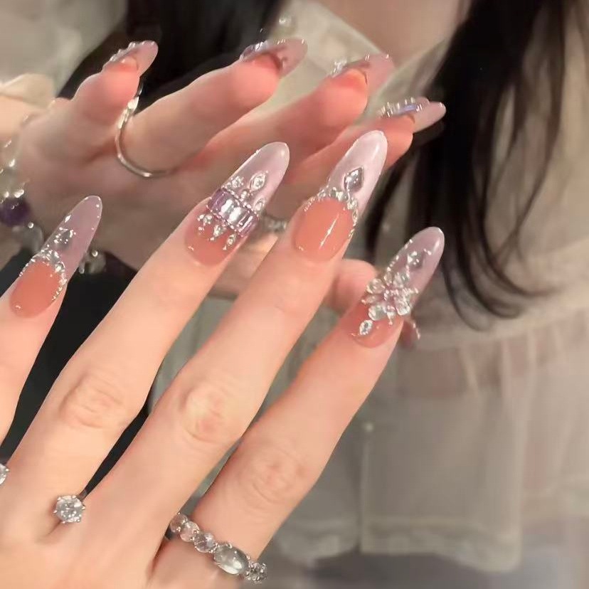纯手工穿戴甲高级感气质纯欲风爆闪碎钻温柔风显白可拆卸美甲贴片
