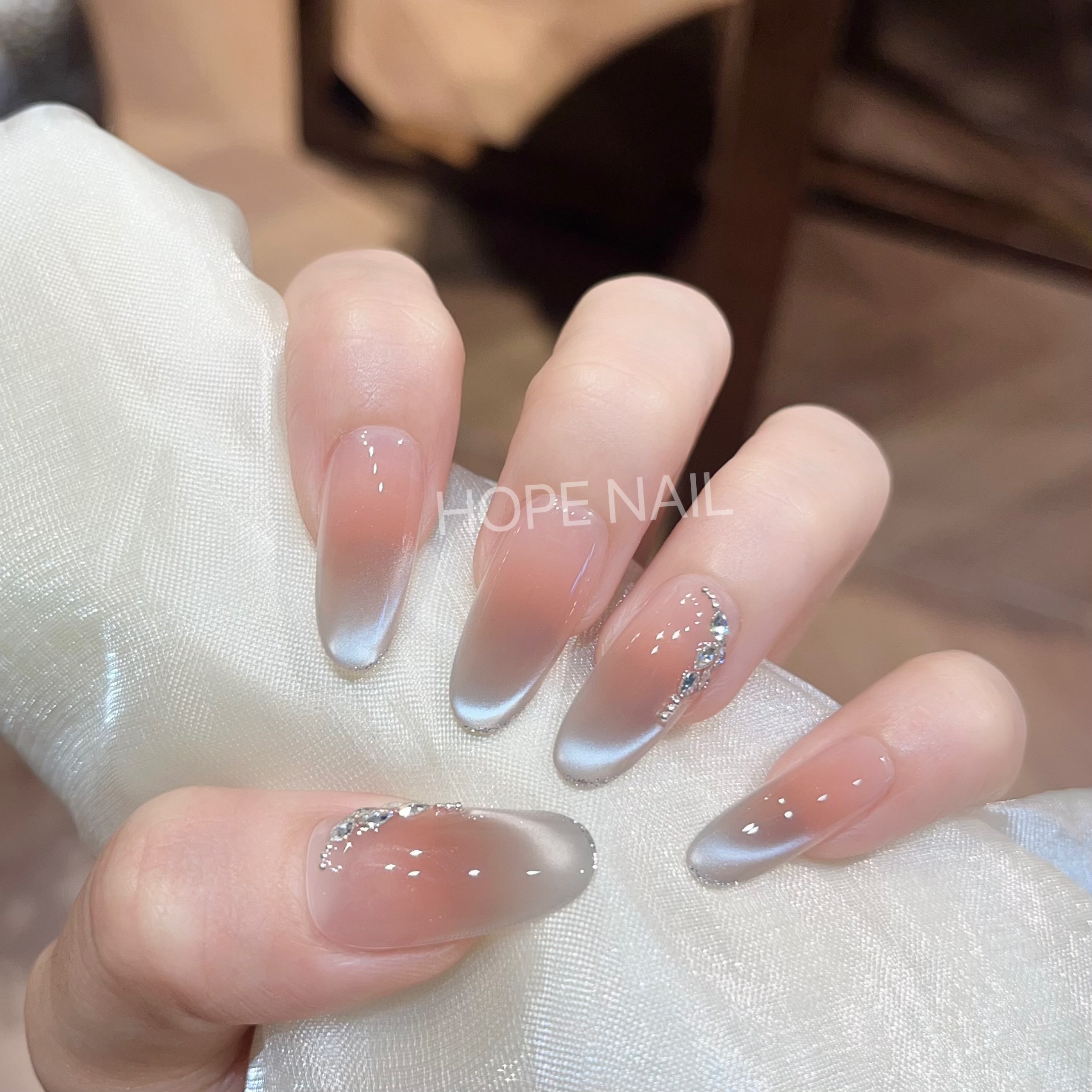纯手工穿戴甲冰透白月光纯欲裸色甘露寺猫眼高级感贴钻气质美甲贴