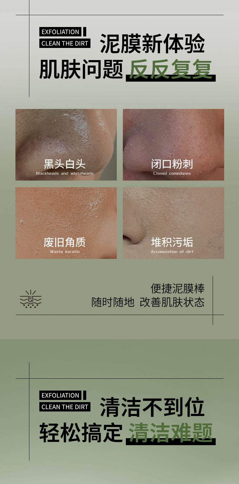 製品仕様 効果的なクレンジングと黒ずみ除去マッドマスクスティック 40g