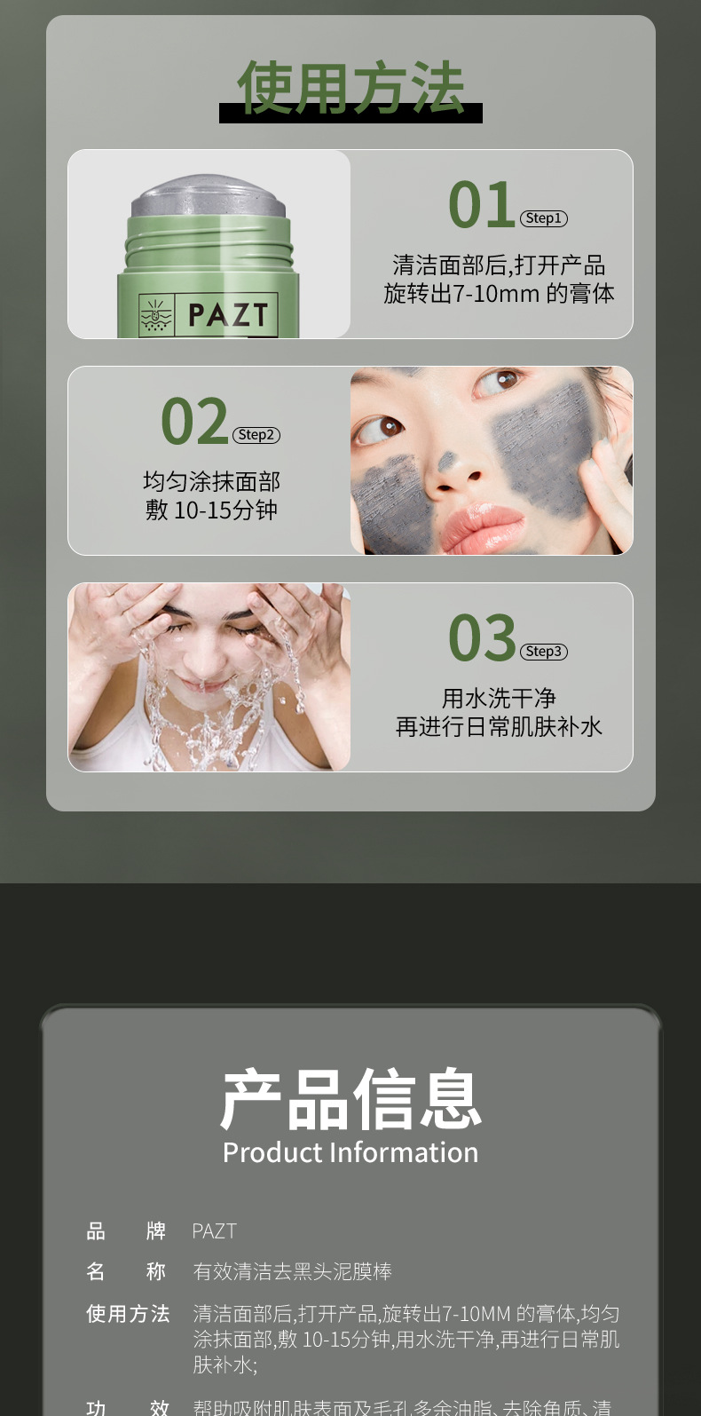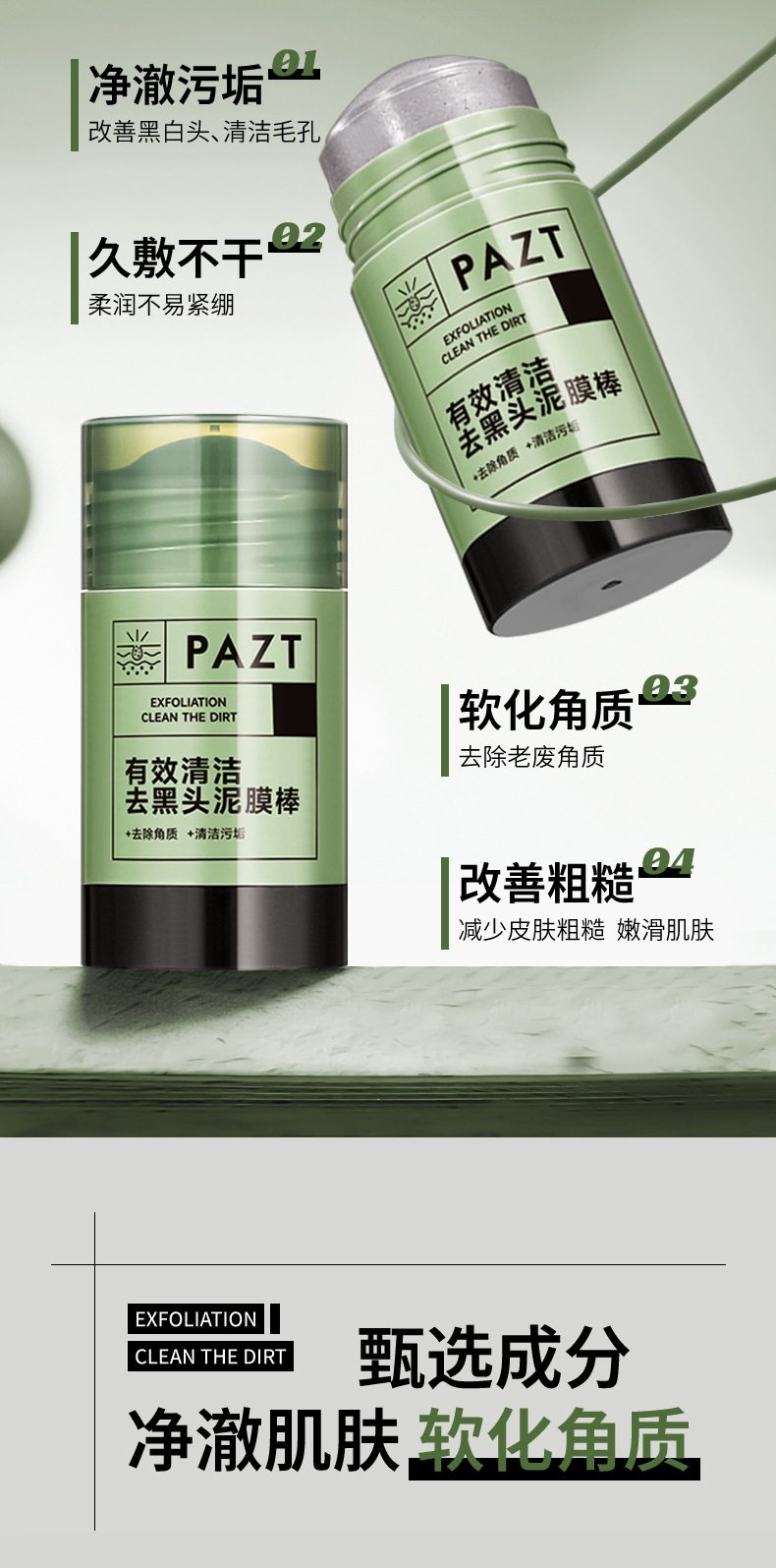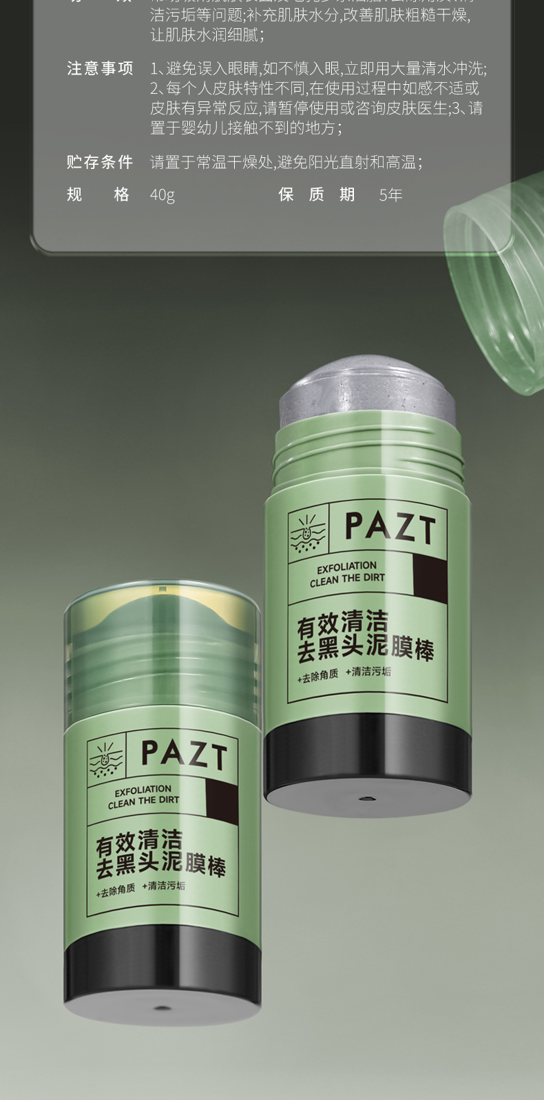 PAZTは黒頭泥膜棒40g塗布式固体泥膜棒固体マスク卸売りを効果的に洗浄する