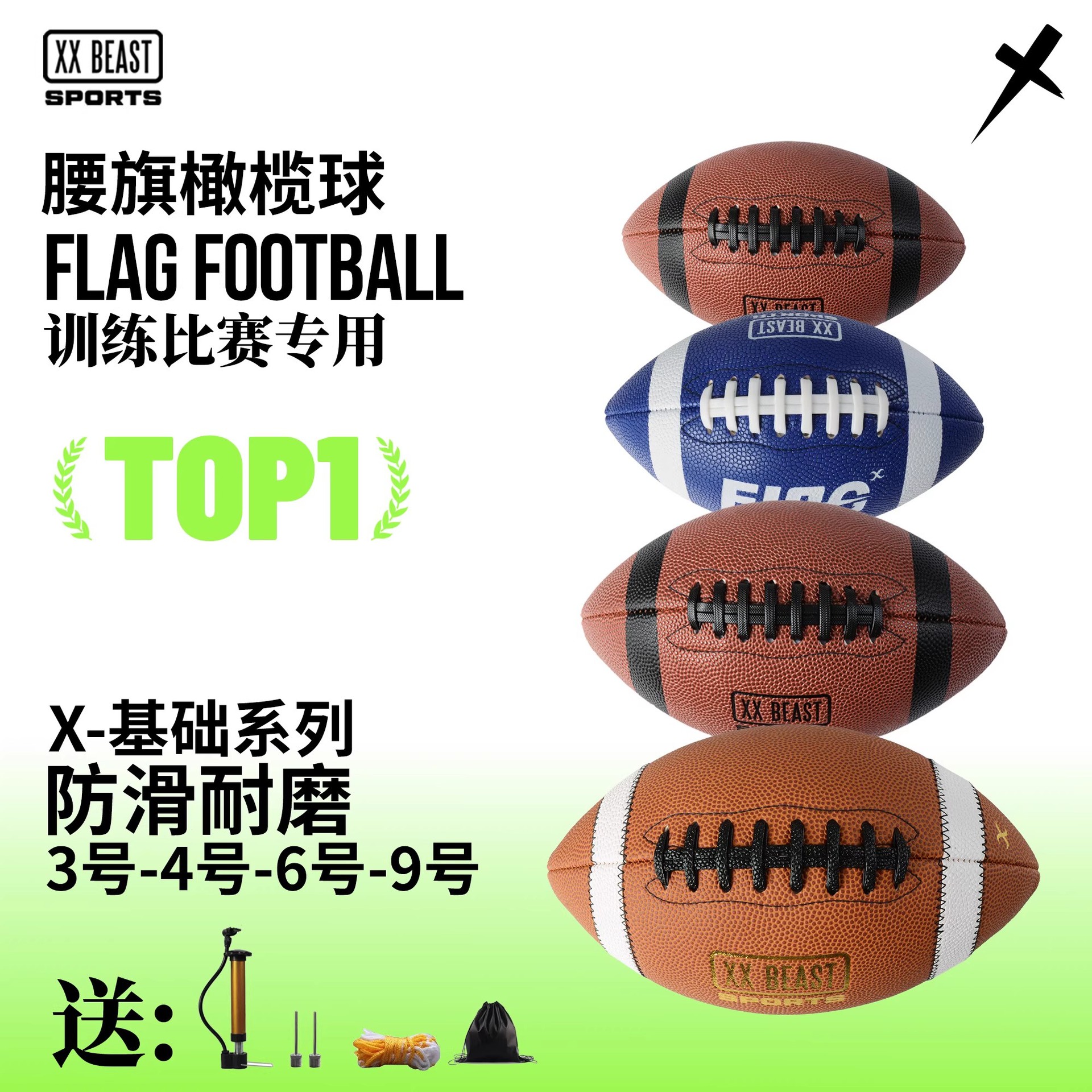 XXBEAST正品美式橄榄球足球9号6号4号3号防滑耐磨PU腰旗橄榄球