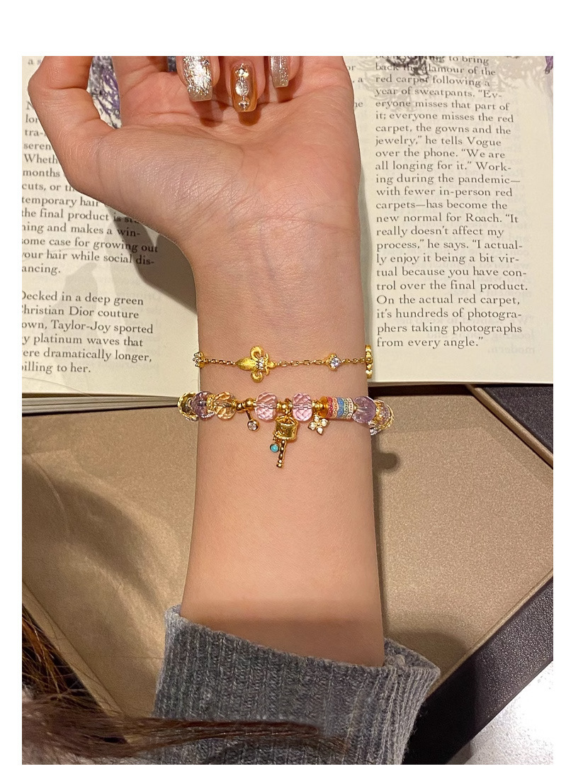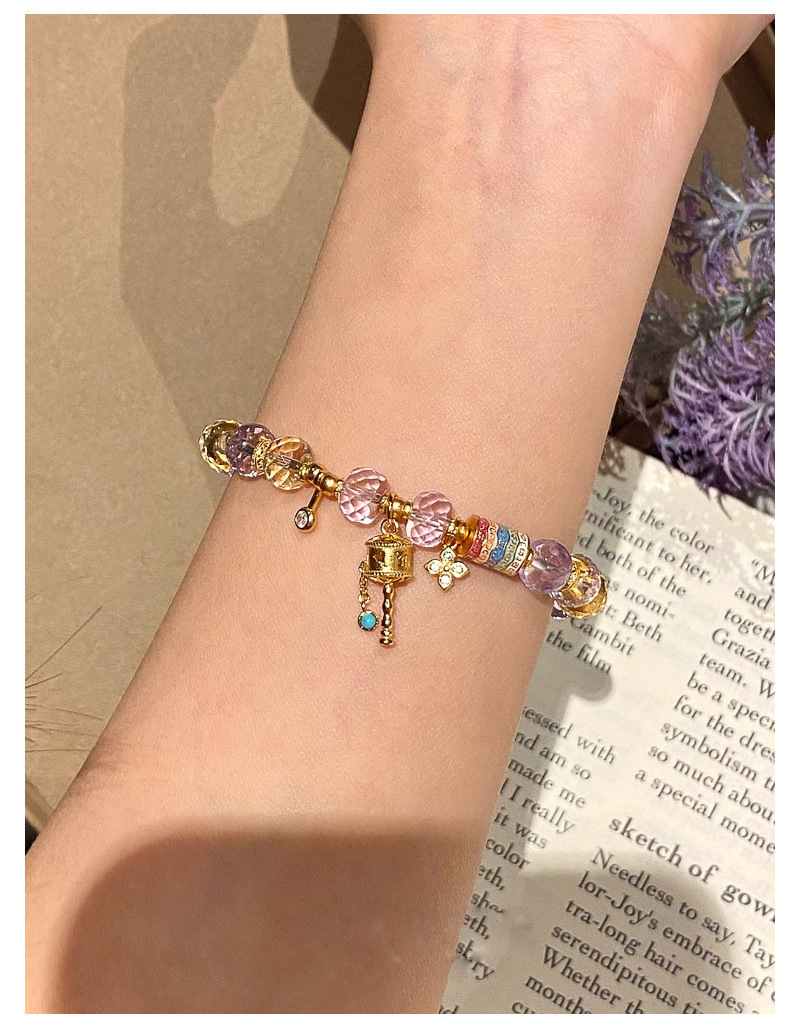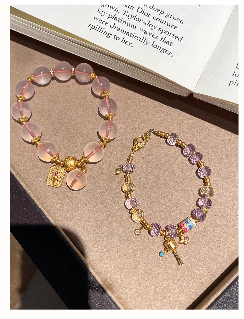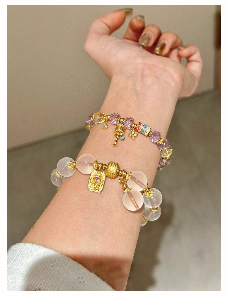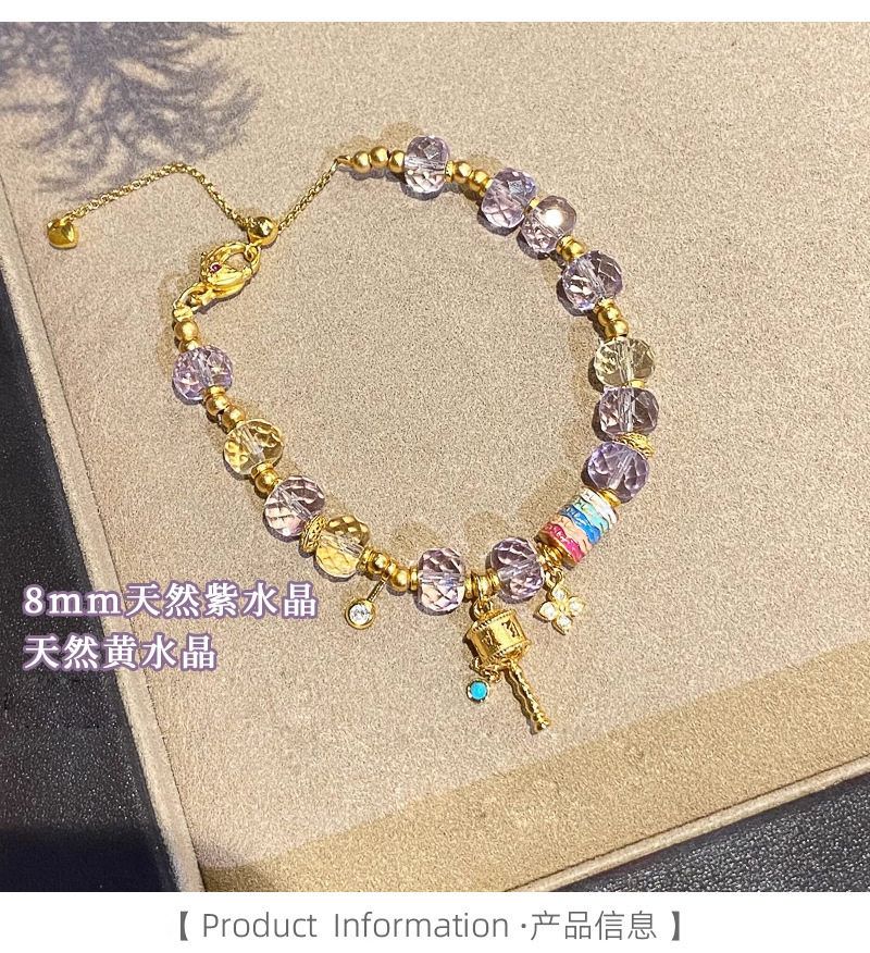 金象牌天然粉水晶ブレスレット軽豪華高級感手串女招財黄水晶紫水晶数珠手飾り