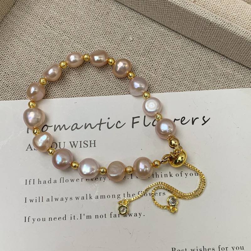 女性用の純粋な天然バロック淡水パールブレスレット、軽い豪華さとハイエンドのパールビーズブレスレット、女性用の親友のハンドジュエリー
