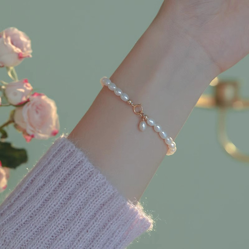 4-5mm米型天然淡水パールブレスレット、シンプルな気質、クラシックで軽い高級感、女性向けのトレンディなニッチデザイン