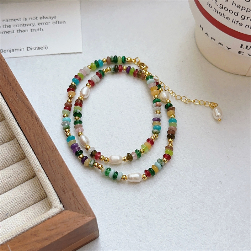 天然石ネックレスレディースカラフルなガラスドーパミンビーズセータースタイルライトラグジュアリーニッチ多用途ハイエンド鎖骨チェーン