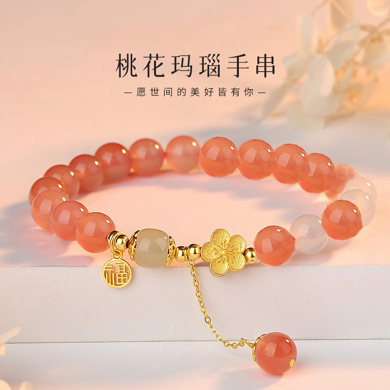 桃の死は無事にブレスレットの女子学生の赤い瑪瑙の桃の花を掛けて桃の花のピンクの水晶の数珠を招きます。