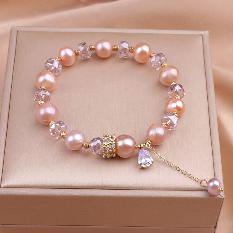 軽くて豪華で絶妙な二層マイクロセット石家真珠ブレスレットパープルホースピンク桃の花天然石ブレスレット