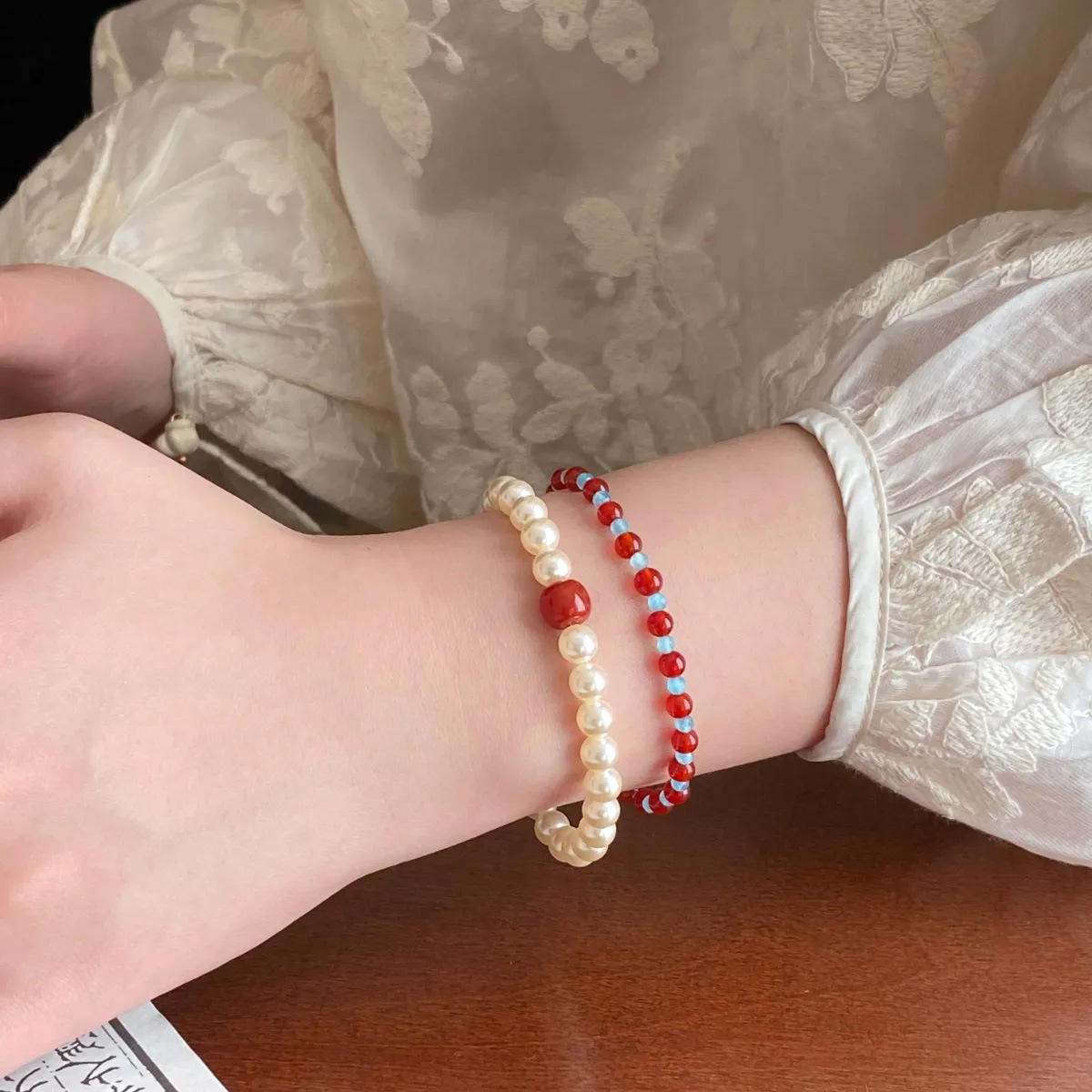 南紅真珠ブレスレット レディース 多用途 新中式 高級感 白肌効果 南紅瑪瑙真珠ブレスレット 女性用