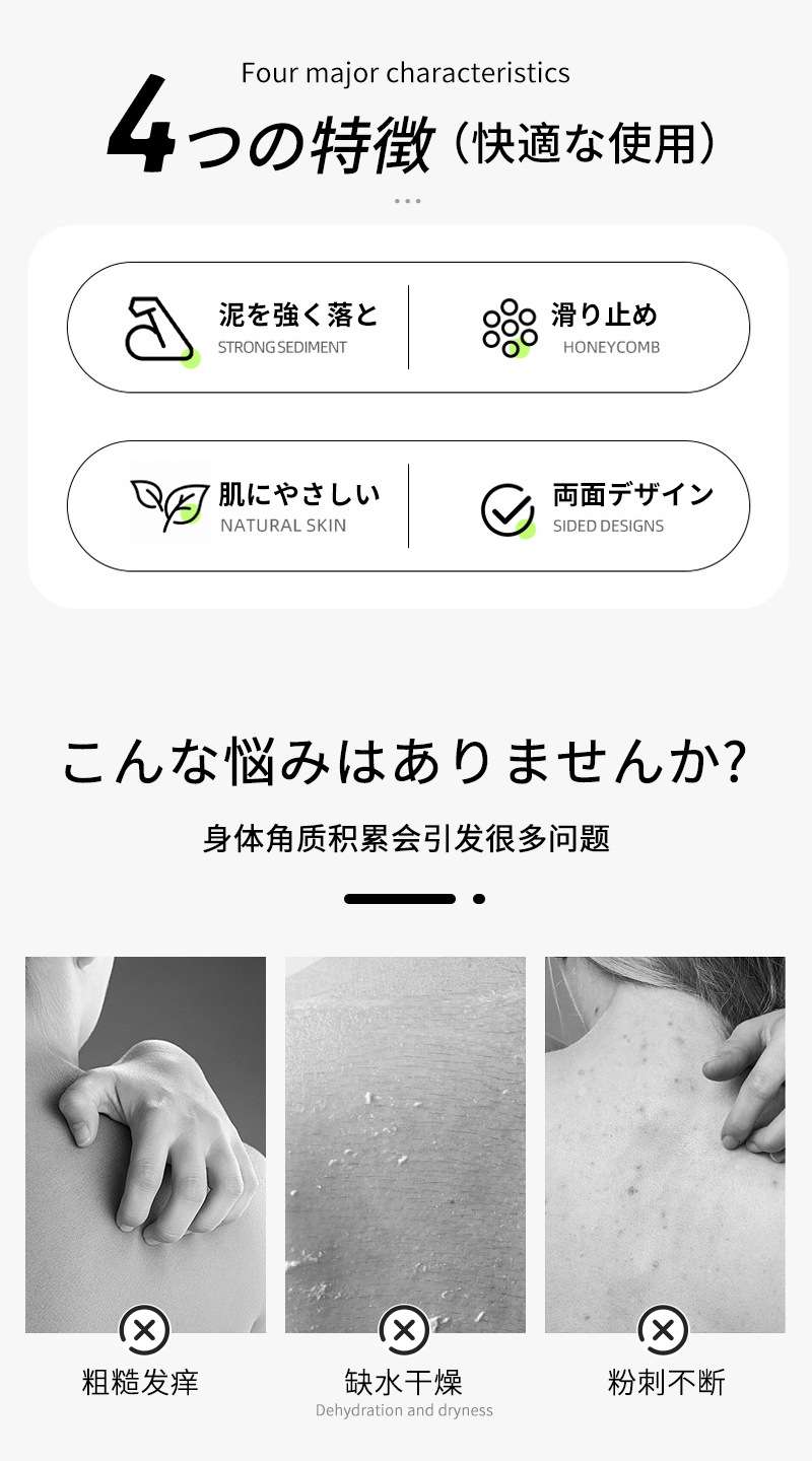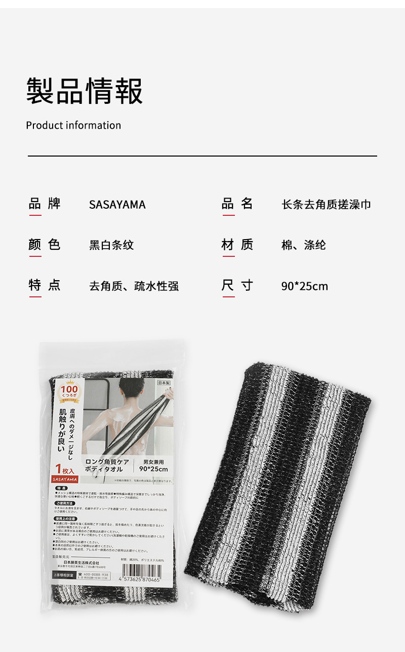 総代日本kawataniバスタオル入浴タオル強力泥神器家庭用粗砂長条背中入浴