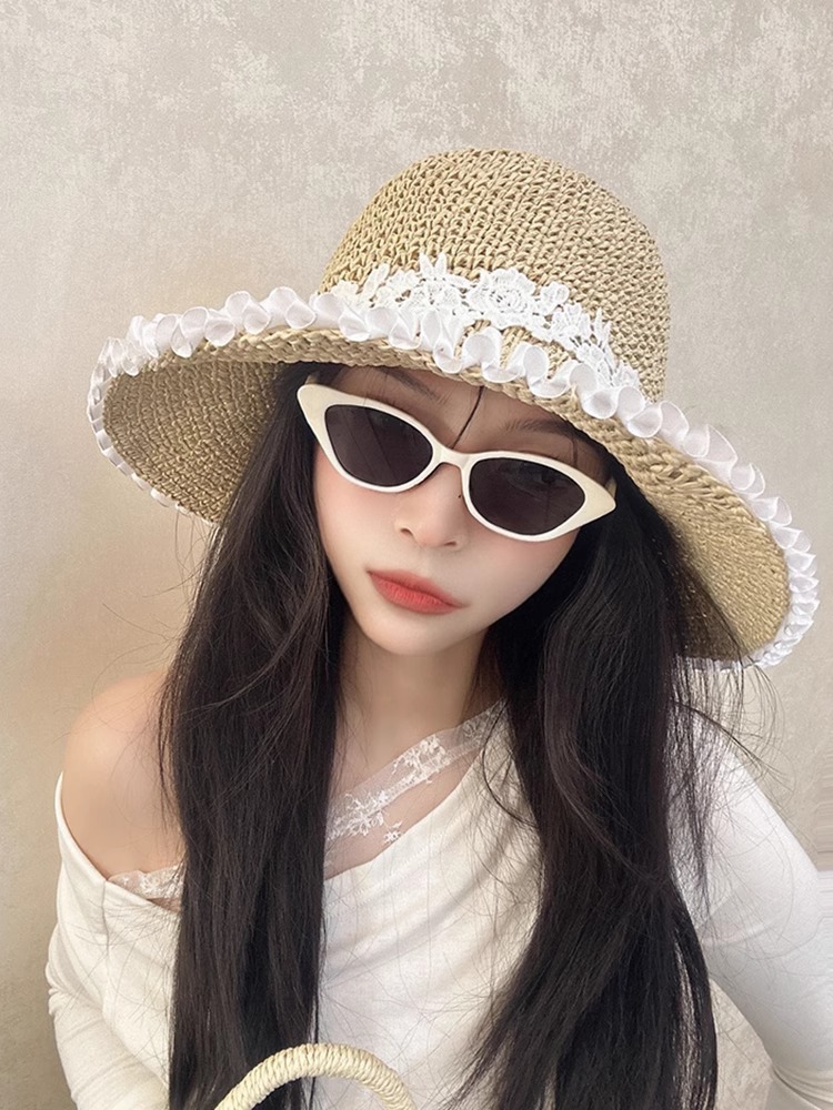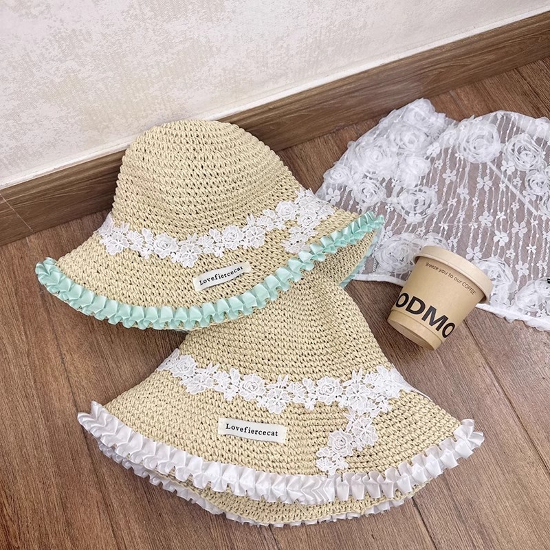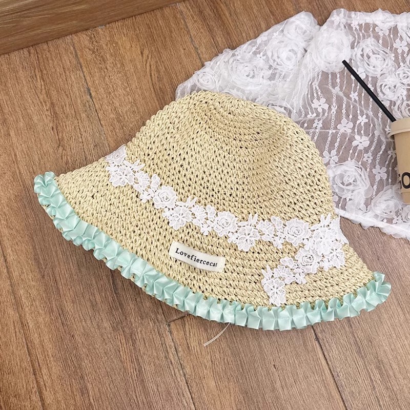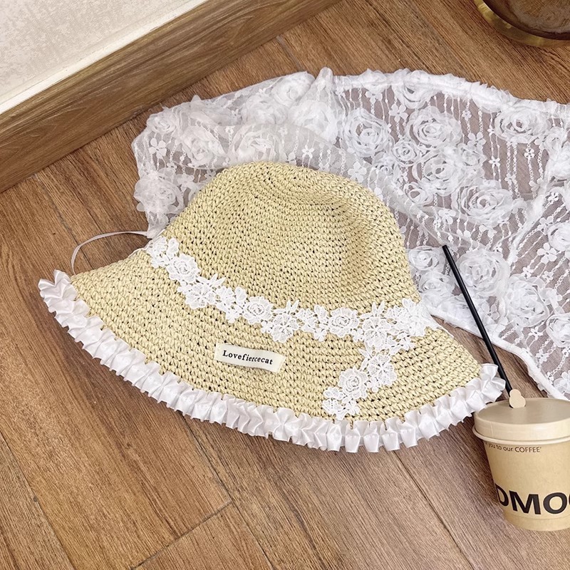 帽子の女性の海辺の麦わら帽子の韓国版の潮は日本の夏の日よけの森系の小さい清新な砂浜のレースの花を組み合わせます。