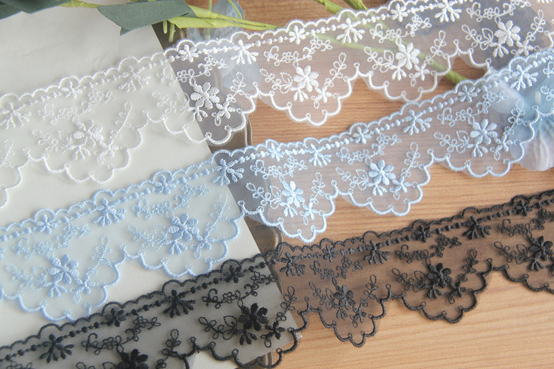 D11J7手作りDIY服アクセサリー日単レース刺繍上質シルク糸メッシュ刺繍レース幅4.5cm