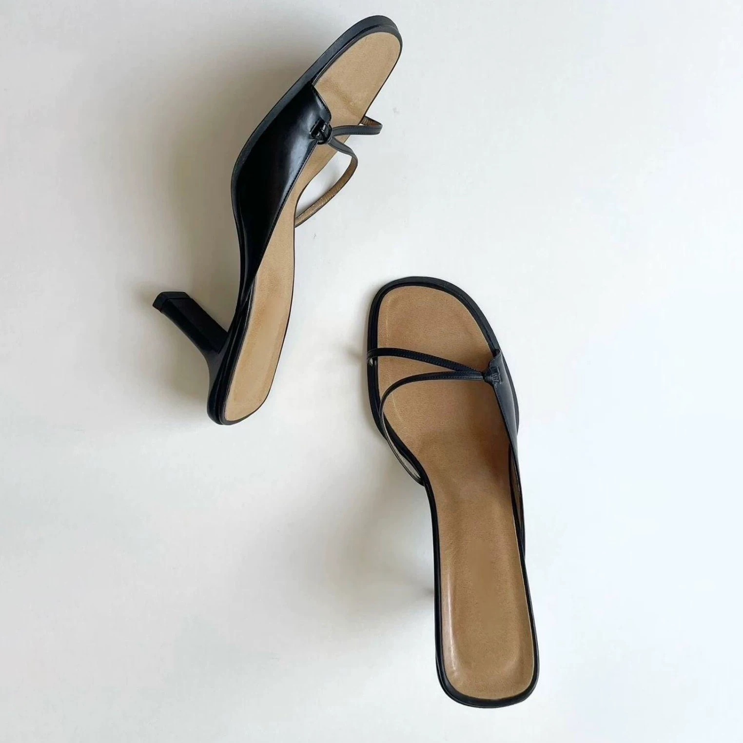 羊皮版 ~ 極簡小衆気質細帯ハイヒール露指一字サンダル女性外着2025夏サンダル