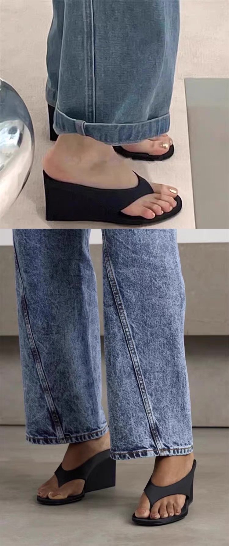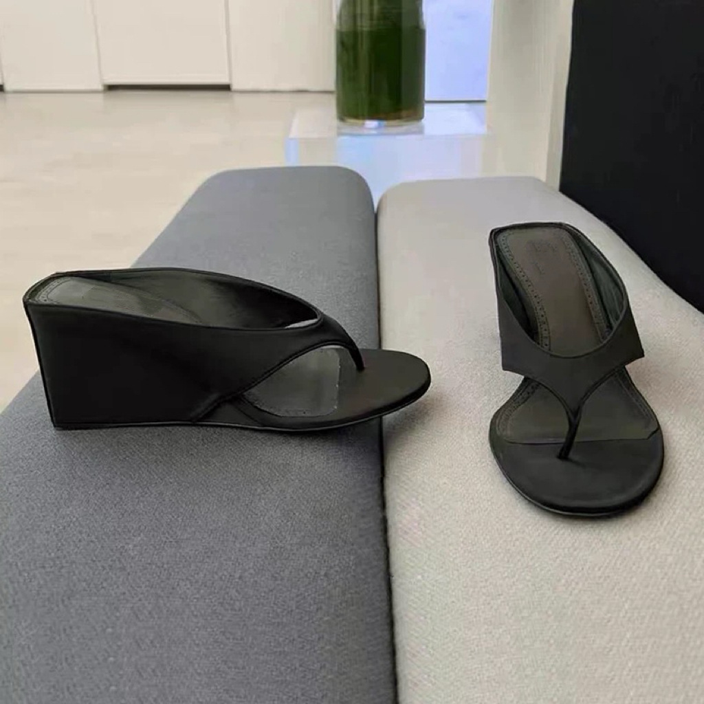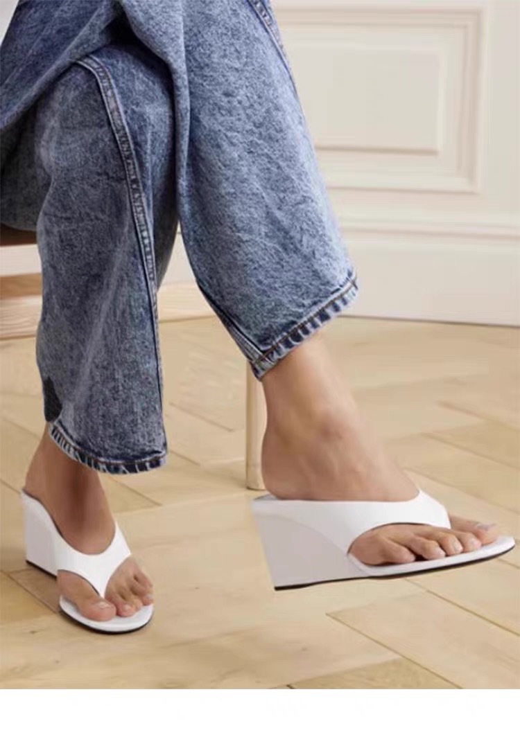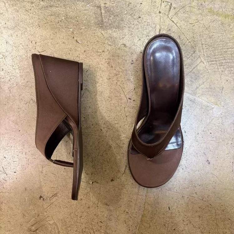 羊皮版 ~ 欧米の小衆坂と足を挟む人の字のサンダルの女性は2025夏の厚い底のハイヒールのサンダルを着ます。
