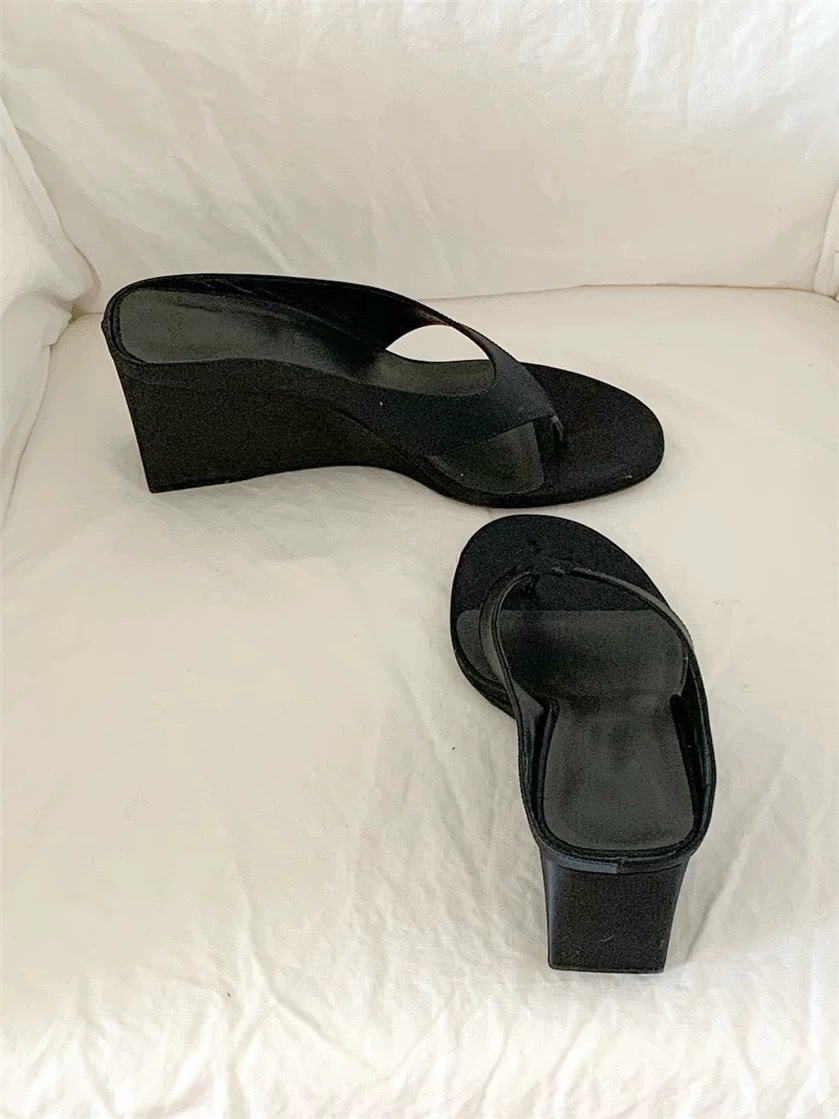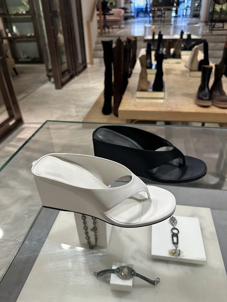 羊皮版 ~ シンプルで高級感のある木目の坂と一字のスリッパの女性は2025新型の夏のハイヒールを履いています。