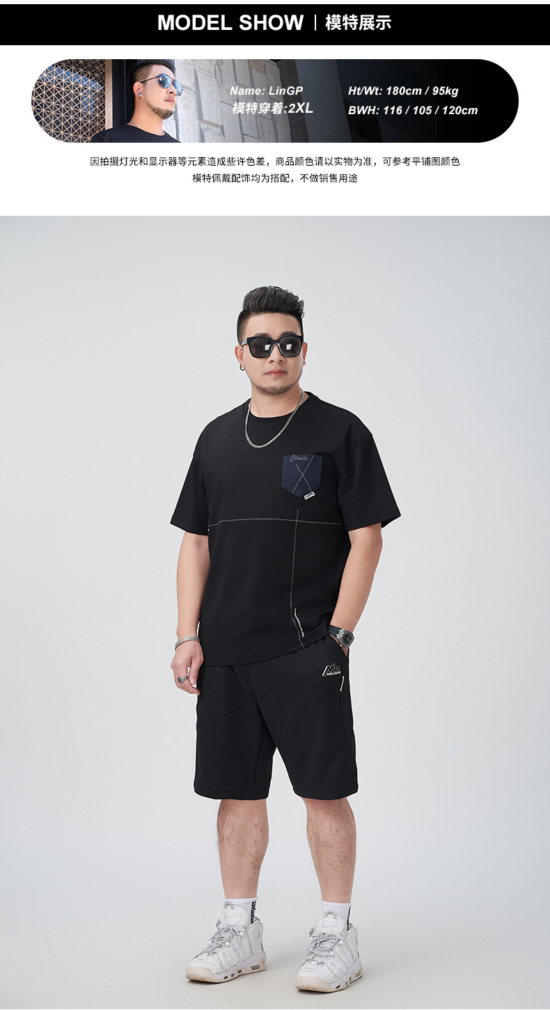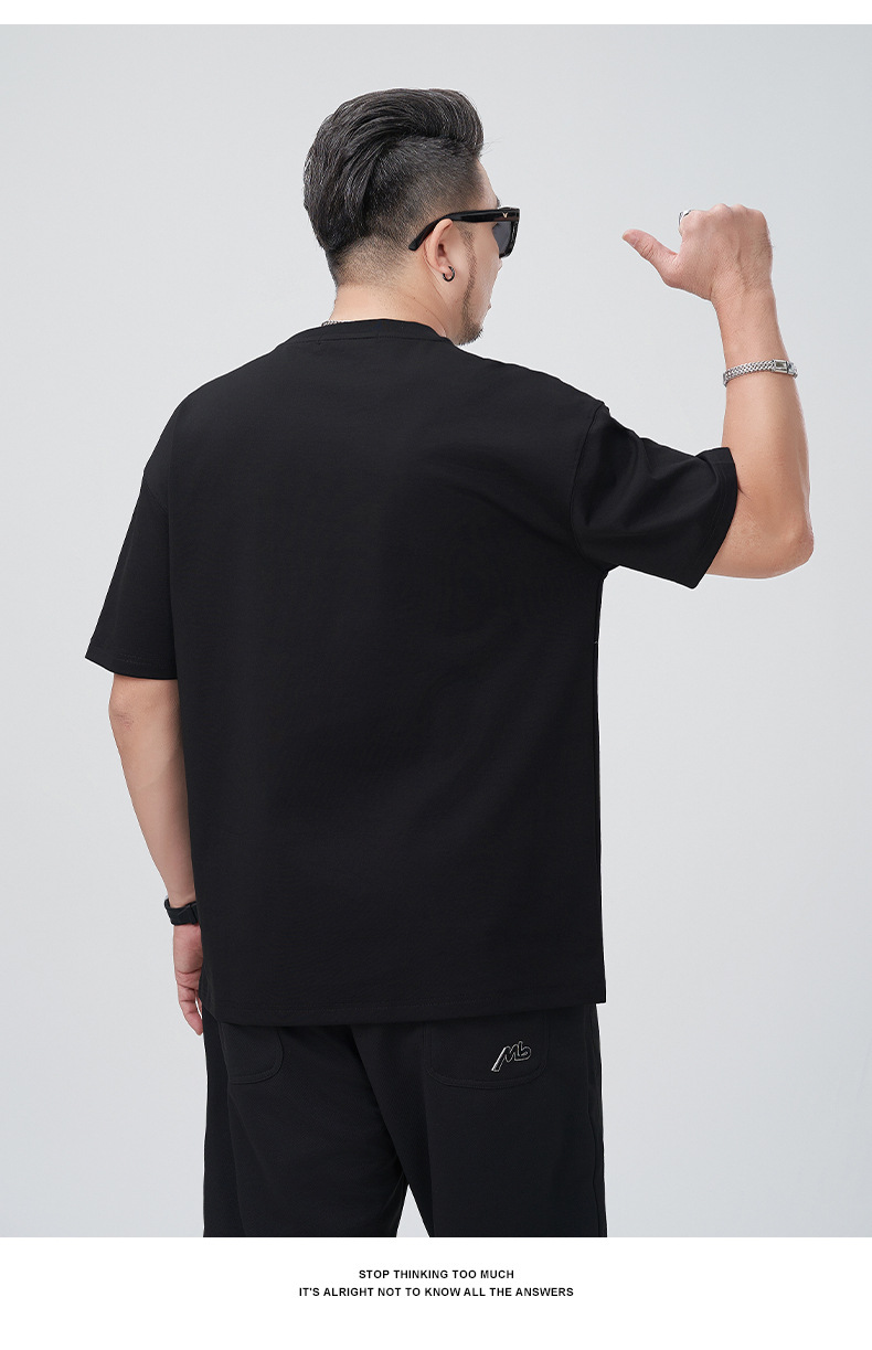 T1091重ポンド大きいサイズ男服丸首半袖tシャツメンズゆるい純色新作服夏tシャツ日系