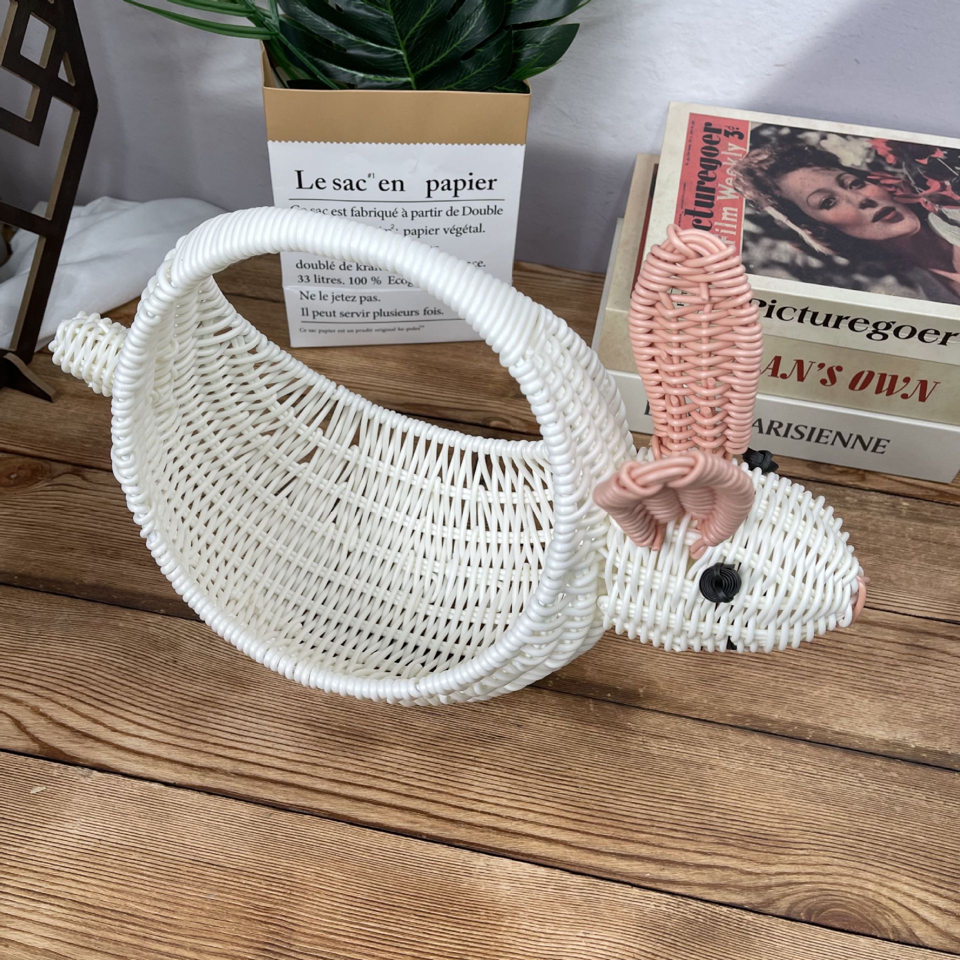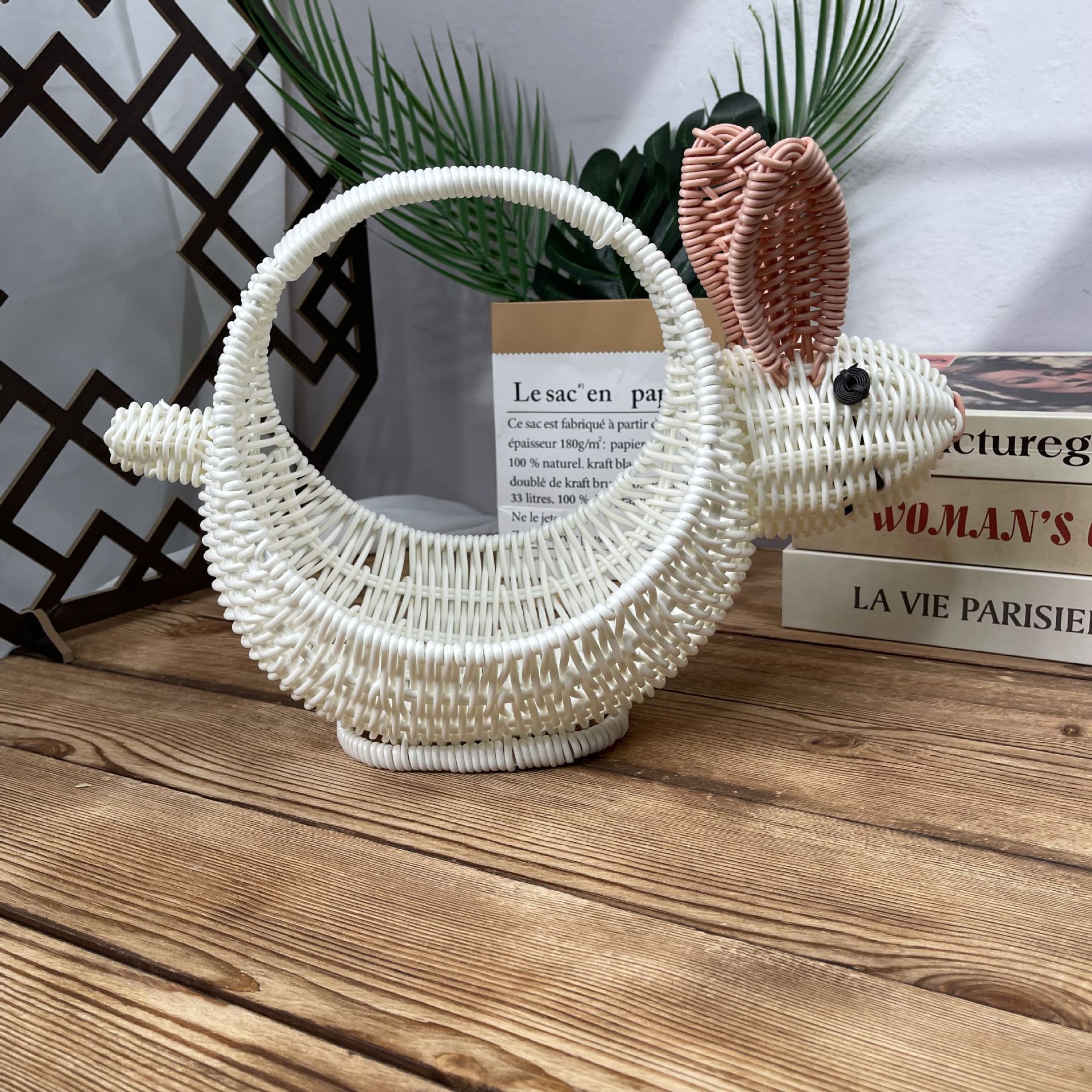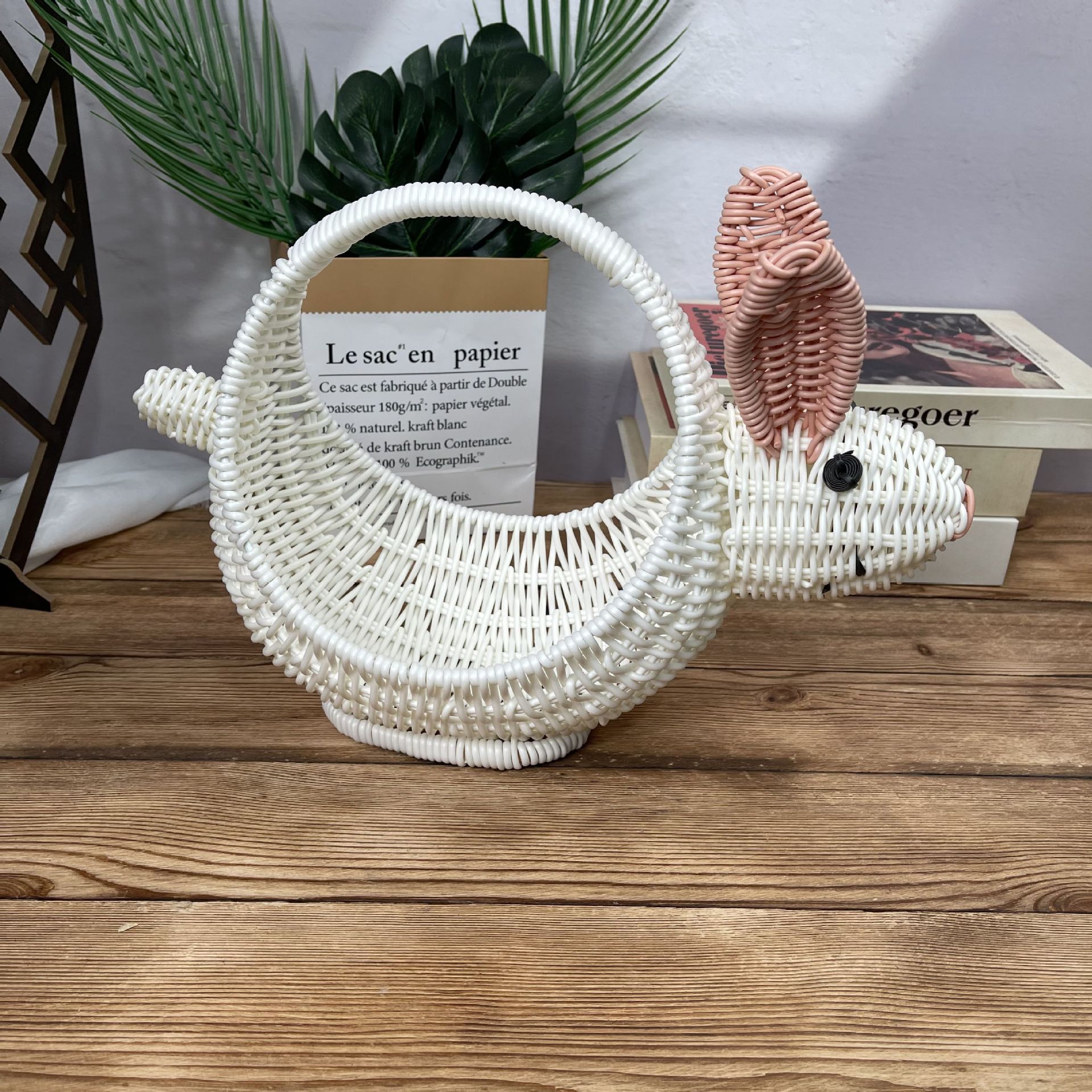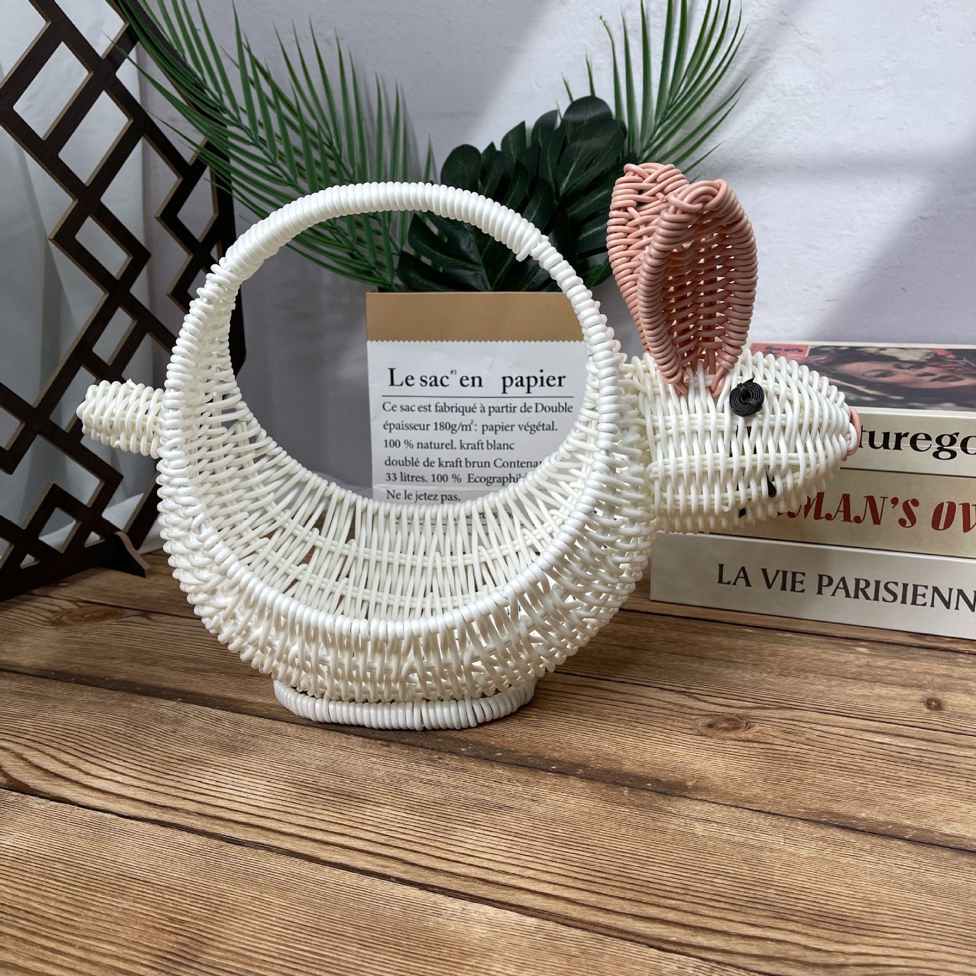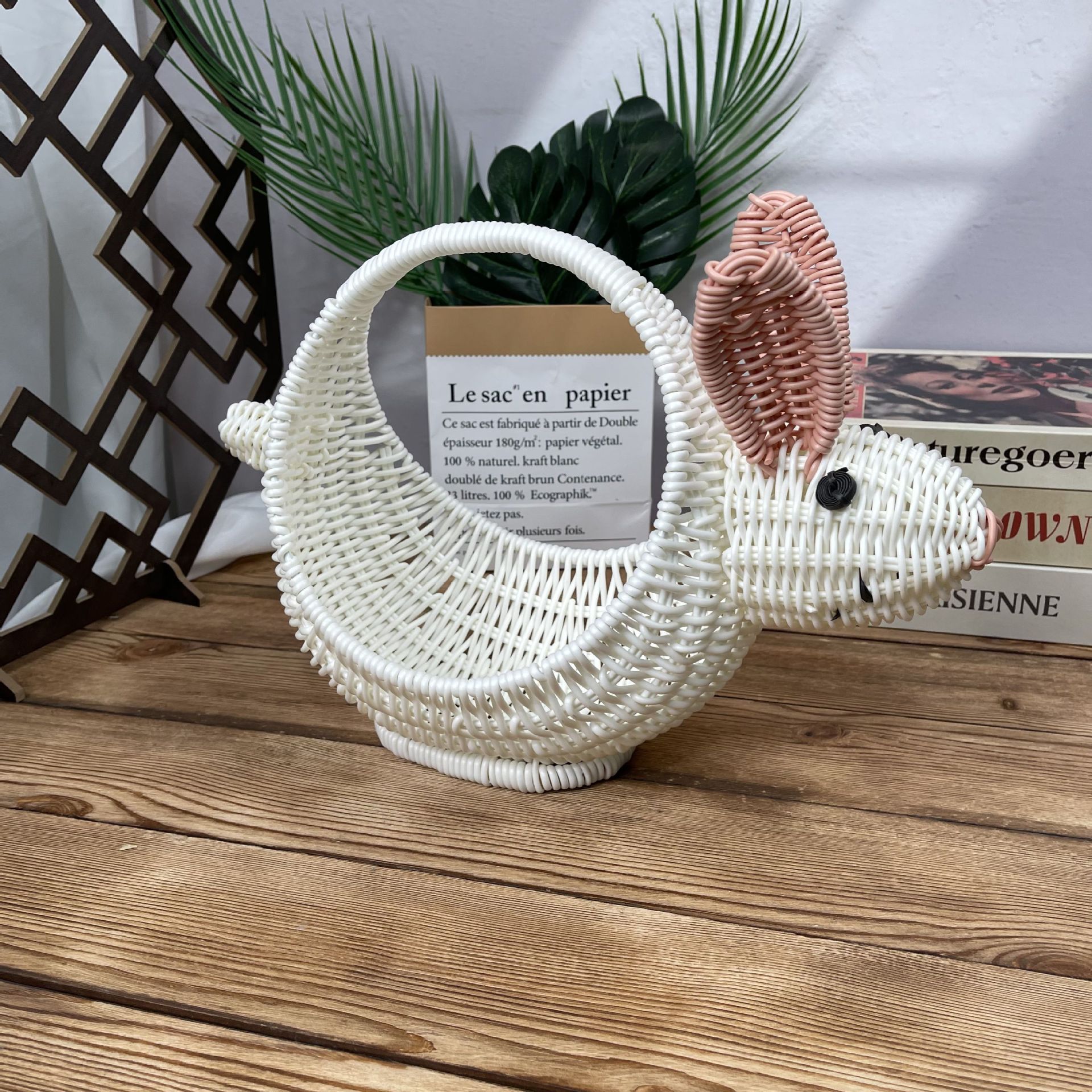 籐収納バスケット動物クリエイティブフルーツバスケットデスクトップスナック小動物収納バスケットコーヒーテーブルデスクトップ装飾